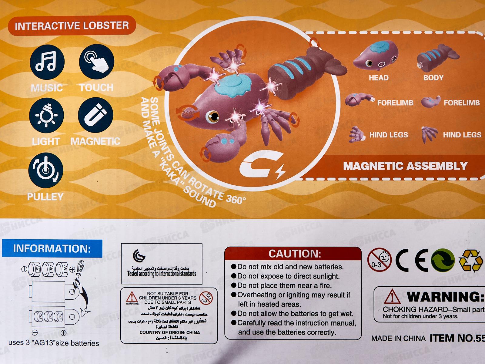 Игрушка "Лобстер" 2119595 на батарейках, свет, звук, в коробке 27*13*19,3см
