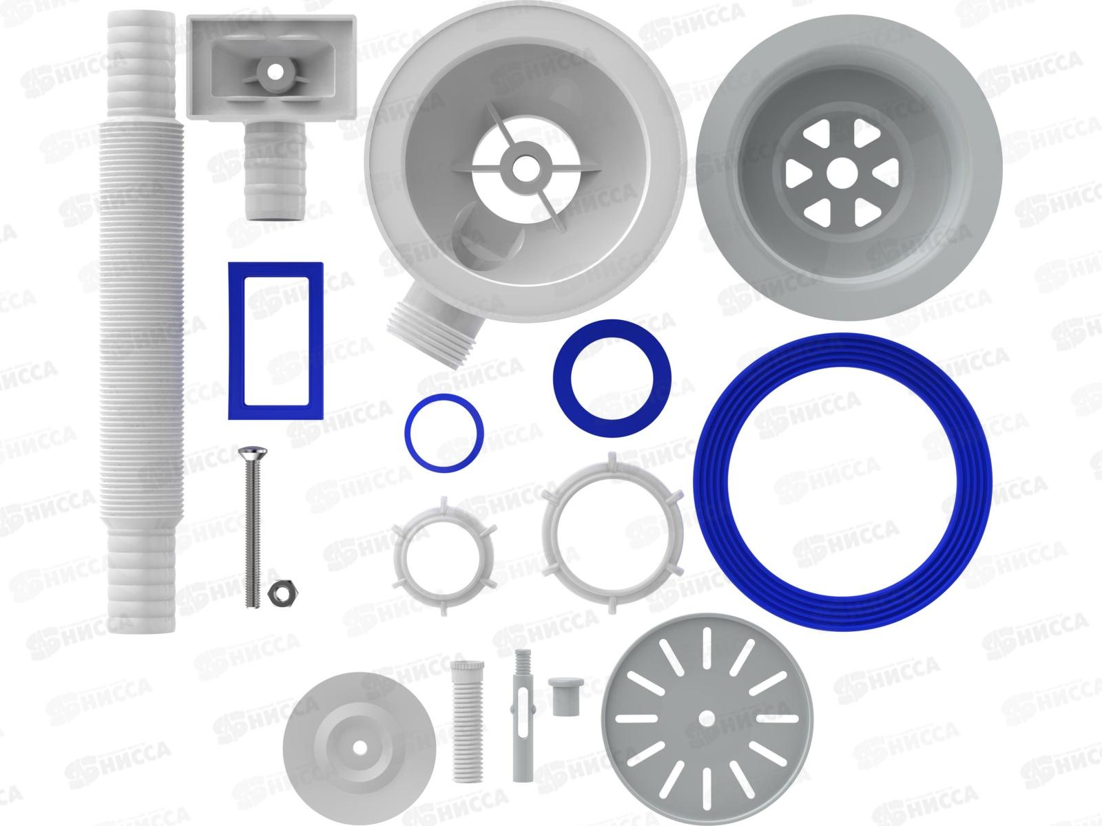 Выпуск 3 1/2" для кухонных моек с диаметром сливного отверстия 90 мм. Выпуск с разборной горловиной, с пластиковой решеткой 113 мм и ситечком 78 мм, пластиковым держателем ситечка и втулкой для крепления к мойке. Идет в комплекте с прямоугольным переливом с двумя видами прокладок, под прямую и круглую мойки. Подходит для подключения к бутылочному или прямоточному (U-образному) сифонам бренда Aquant или других производителей. Все пластиковые детали выпуска производятся из первичного полипропилена с добавлением снежно-белого красителя, выдерживают перепад температур от +5 до +80 С. Прокладки изготовлены из высококачественных пластикатов (TPE, PVC, LDPE) и обеспечивают длительный срок службы и высокую ремонтопригодность. Все необходимые прокладки, гайки и винты в комплекте.