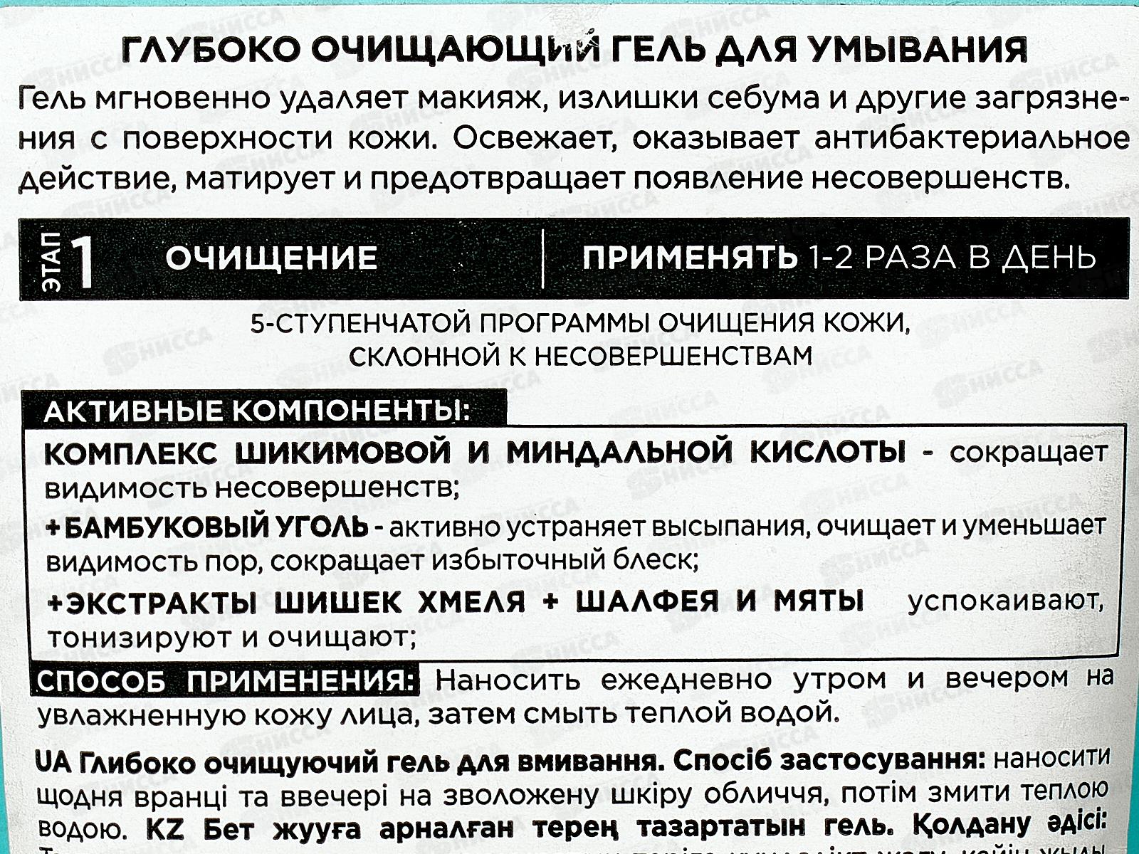 Гель для очищения лица из серии PERFECT SKIN ACNE позаботится об идеальном очищении кожи. Его формула уменьшит несовершенства и оптимизирует выделение кожного сала. Формула содержит антибактериальные шикимовую и миндальную кислоты, поэтому рекомендуется для проблемной и кожа, склонная к акне. Состав: Aqua (Water), Sodium Coco-Sulfate, Cocamidopropyl Betaine, Glycerin, Coco-Glucoside, Charcoal Powder, Mandelic Acid, Shikimic Acid, Arctium Lappa Root Extract, Calendula Officinalis Flower Extract, Citrus Limon Fruit Extract, Humulus Lupulus Extract, Hypericum Perforatum Flower/Leaf/Stem Extract, Mentha Piperita Leaf Extract, Salvia Officinalis Leaf Extract, Saponaria Officinalis Root Extract, Xanthan Gum, Polyacrylate Crosspolymer-6, Sodium Chloride, Sodium Benzoate, Potassium Sorbate, Parfum (Fragrance), Citric Acid, Propylene Glycol