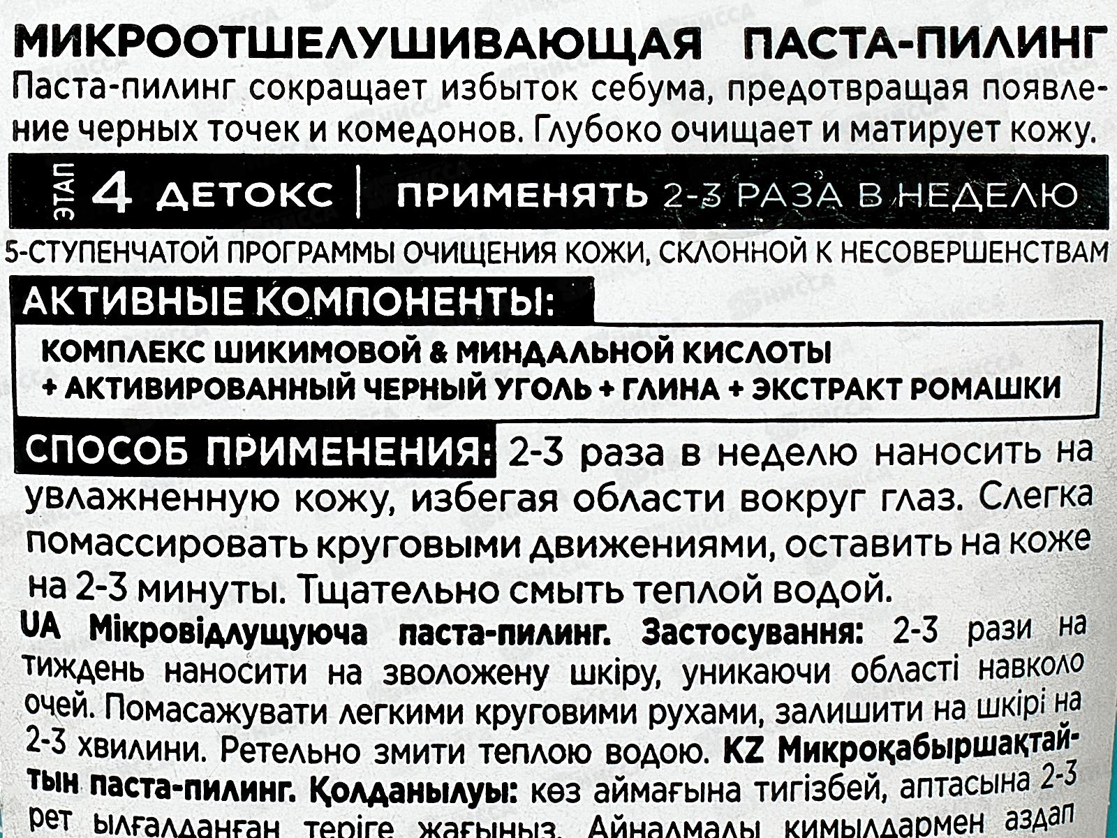 Микроотшелушивающий пилинг из серии PERFECT SKIN ACNE — уникальное косметическое средство, сочетающее в себе также достоинства пасты и маски для лица. Глубоко питает и ухаживает, в том числе, за проблемной кожей, в том числе с угревой сыпью. Состав: Aqua (Water), Glycerin, Cellulose Acetate, Glyceryl Stearates, Magnesium Aluminum Silicate, Silica, Lauryl Glucoside, Arctium Lappa Root Extract, Chamomilla Recutita Flower Extract, Shikimic Acid, Mandelic Acid, Charcoal Powder, Kaolin, Sodium Cocoamphoacetate, Propylene Glycol, Phenoxyethanol, Hydroxyacetophenone, Ethylhexylglycerin, Acacia Senegal Gum, Xanthan Gum, Parfum (Fragrance)