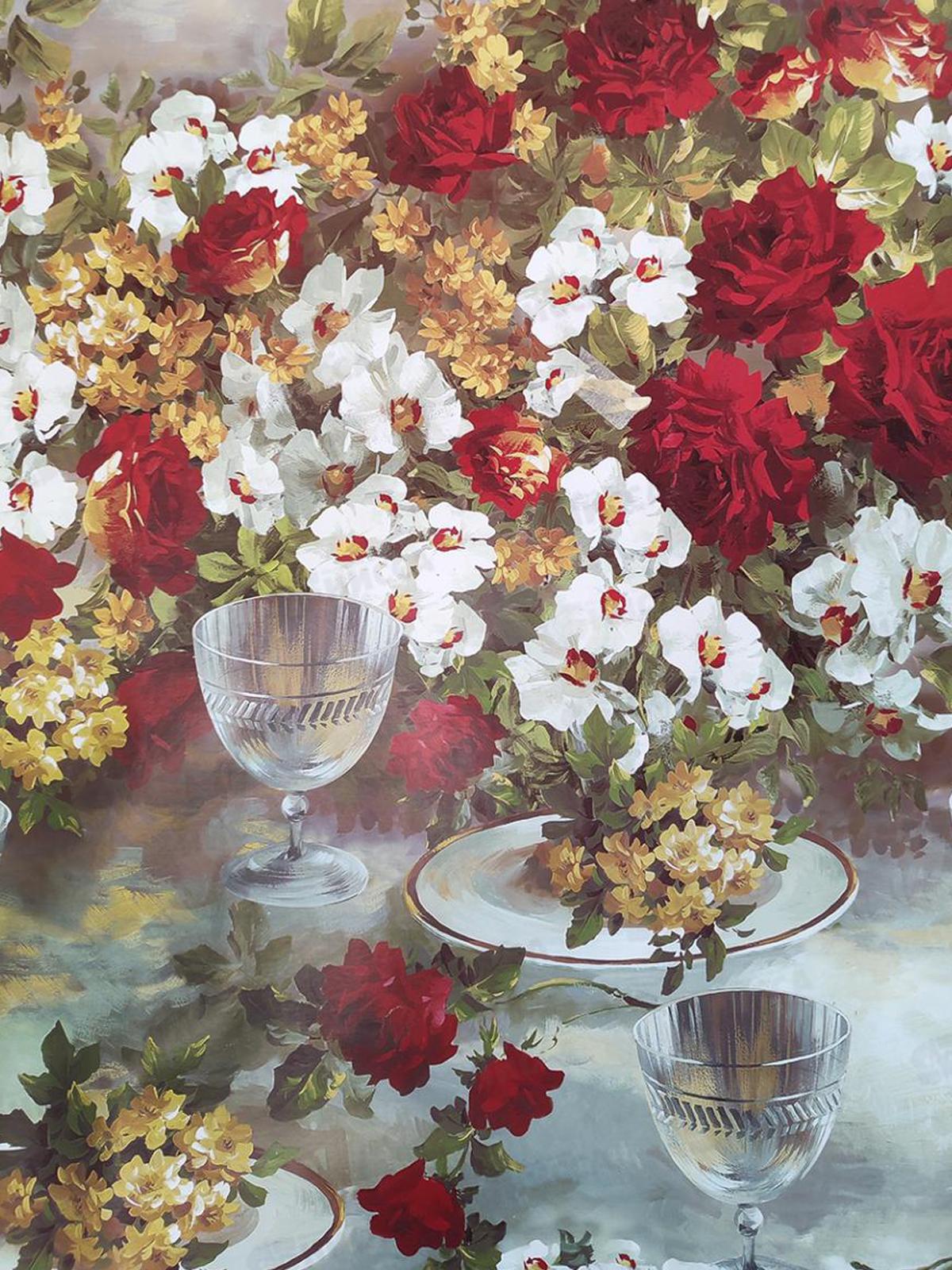 Клеенка на нетканой основе ДЕКОРАМА 1,4*20м 141А бокал и цветы