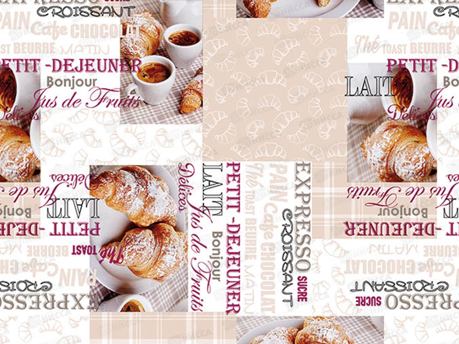Клеенка на неткан основе ДЕКОРАМА 1,4*20м 067А кофе и круассаны