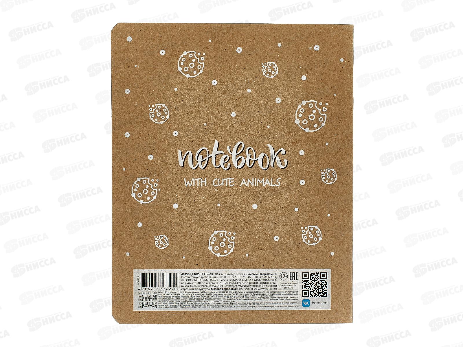 Тетрадь 48листов клетка Hatber С милыми зверьками 066339 *10/100