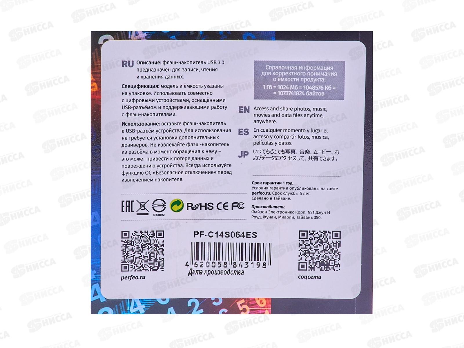 Флеш-карта USB 3.0 Perfeo 64GB C14 Silver metal series
