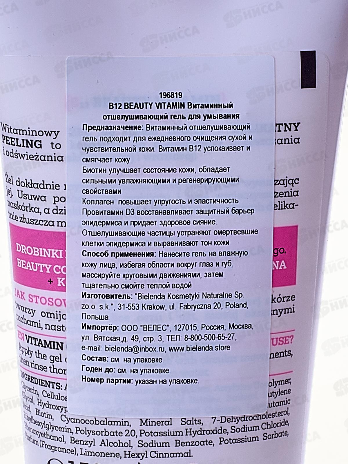 BIELENDA B12 BEAUTY VITAMIN Витаминный гель для умывания лица ГЕЛЬ + НЕЖНЫЙ ПИЛИНГ – высококачественное косметическое средство, предназначенное для ежедневного очищения и освежения сухой и чувствительной кожи.