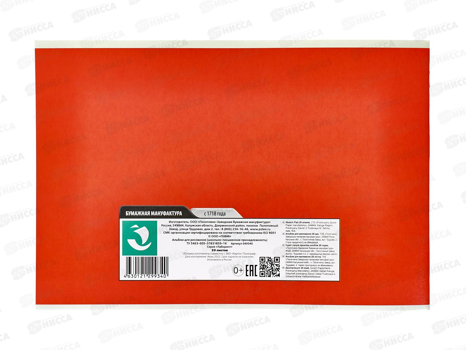 Альбом для рисования 20л ПЗБМ Лабиринт, 049340 *4/48