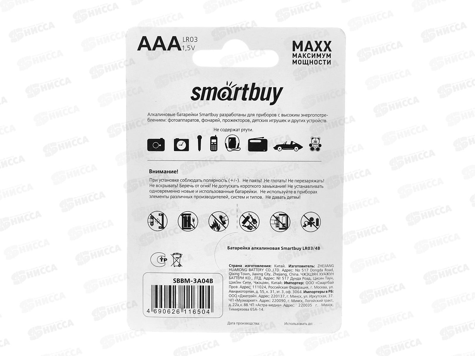 Батарейка SmartBuy LR03/4B MAXX *4/48/480