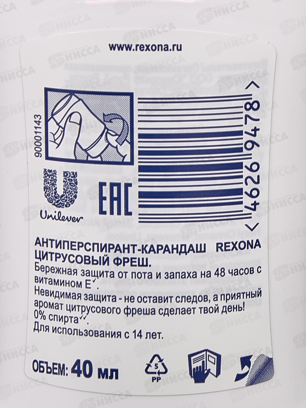 РЕКСОНА дезодорант стик 40мл Цитрусовый фреш *6