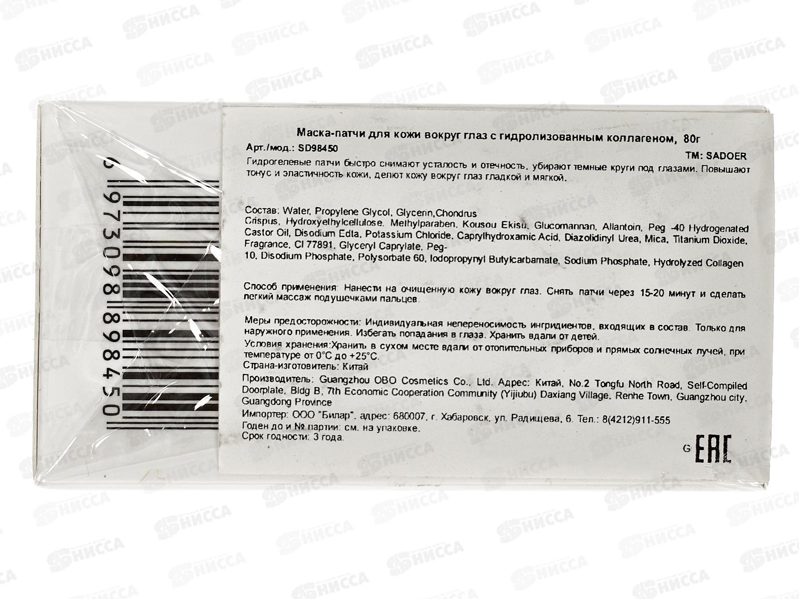 OBO Sadoer патчи 80гр тонизирующие коллаген для всех типов кожи 60шт *96