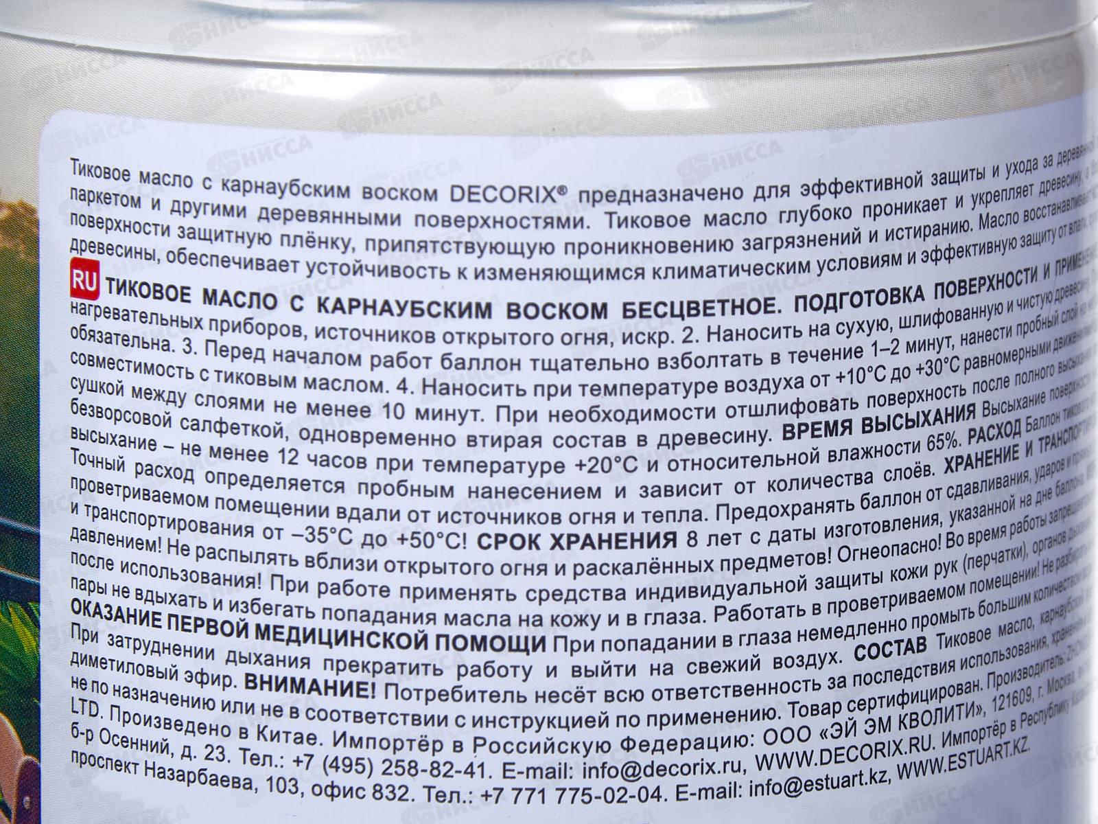 Аэрозольное тиковое масло с карнаубским воском DECORIX 520мл бес 0121