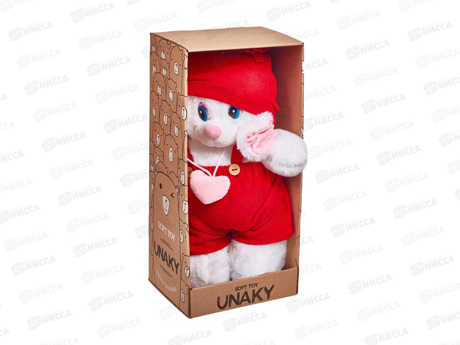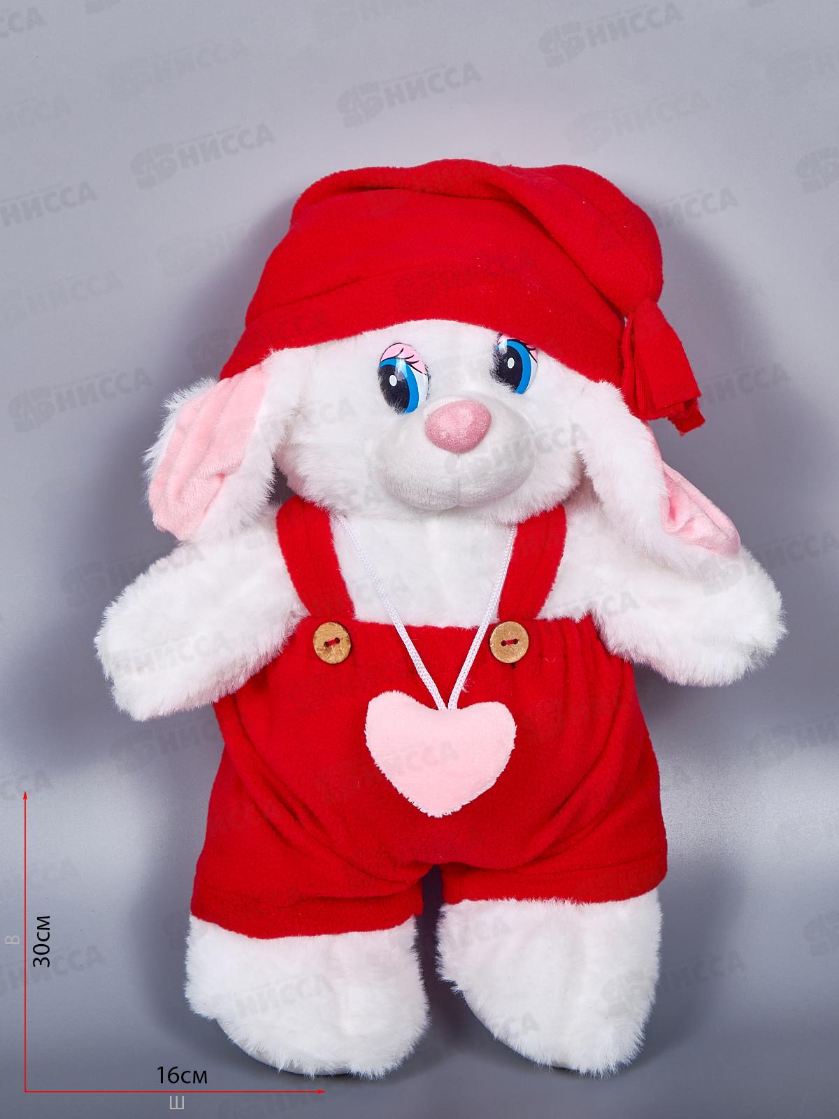 Зайчик Роберт большеглазый, 31см, в красном комбинезоне 0905231-21-28L в коробке