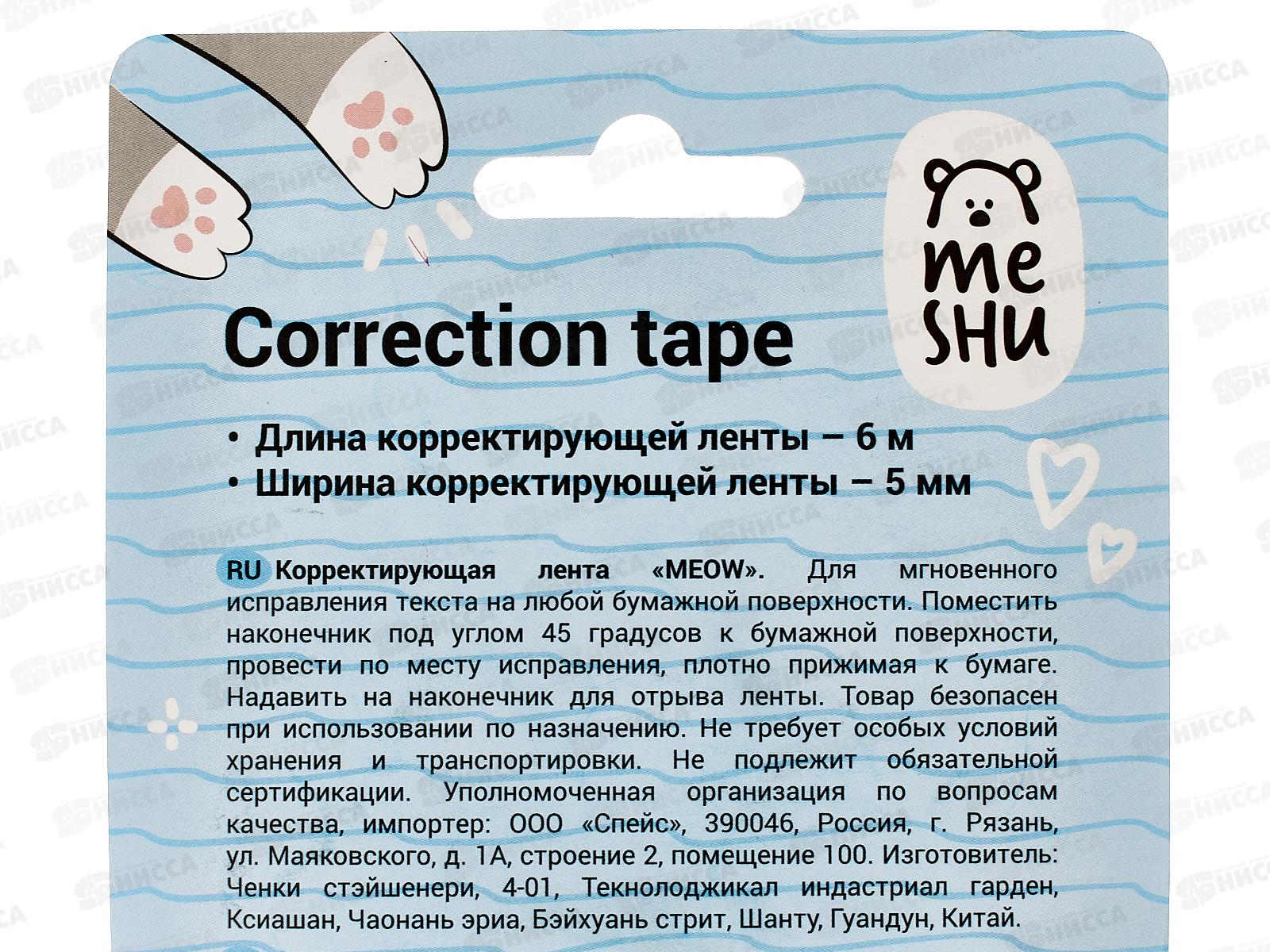 Корректирующая лента MECHU 5мм*6м Meow 54215*6