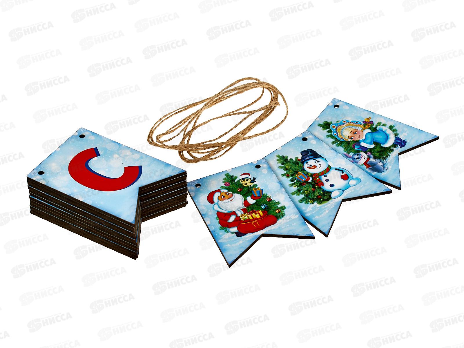Гирлянда деревянная Дед Мороз 15шт нг-грл-001 в пакете
