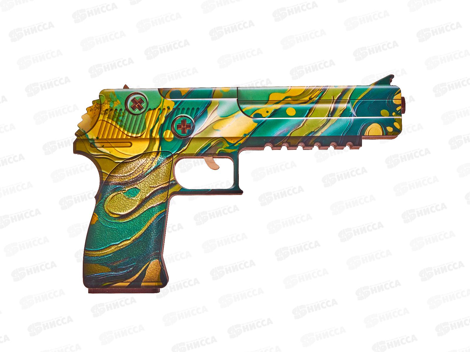 Пистолет "Зеленые волны" 14*23см дерево стреляет резиночками