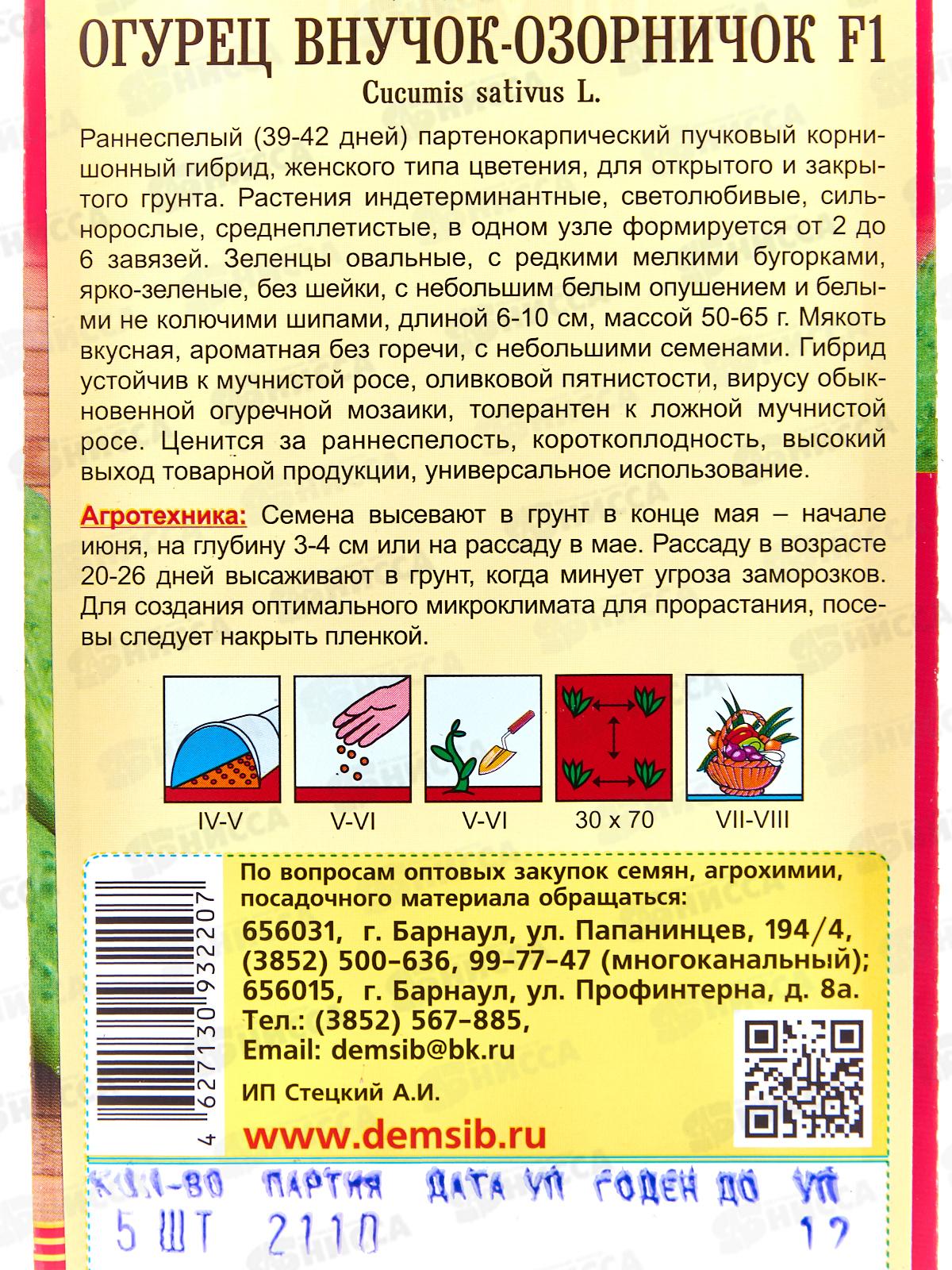 Огурец Внучок озорник F1 (5шт) ДемСиб *10
