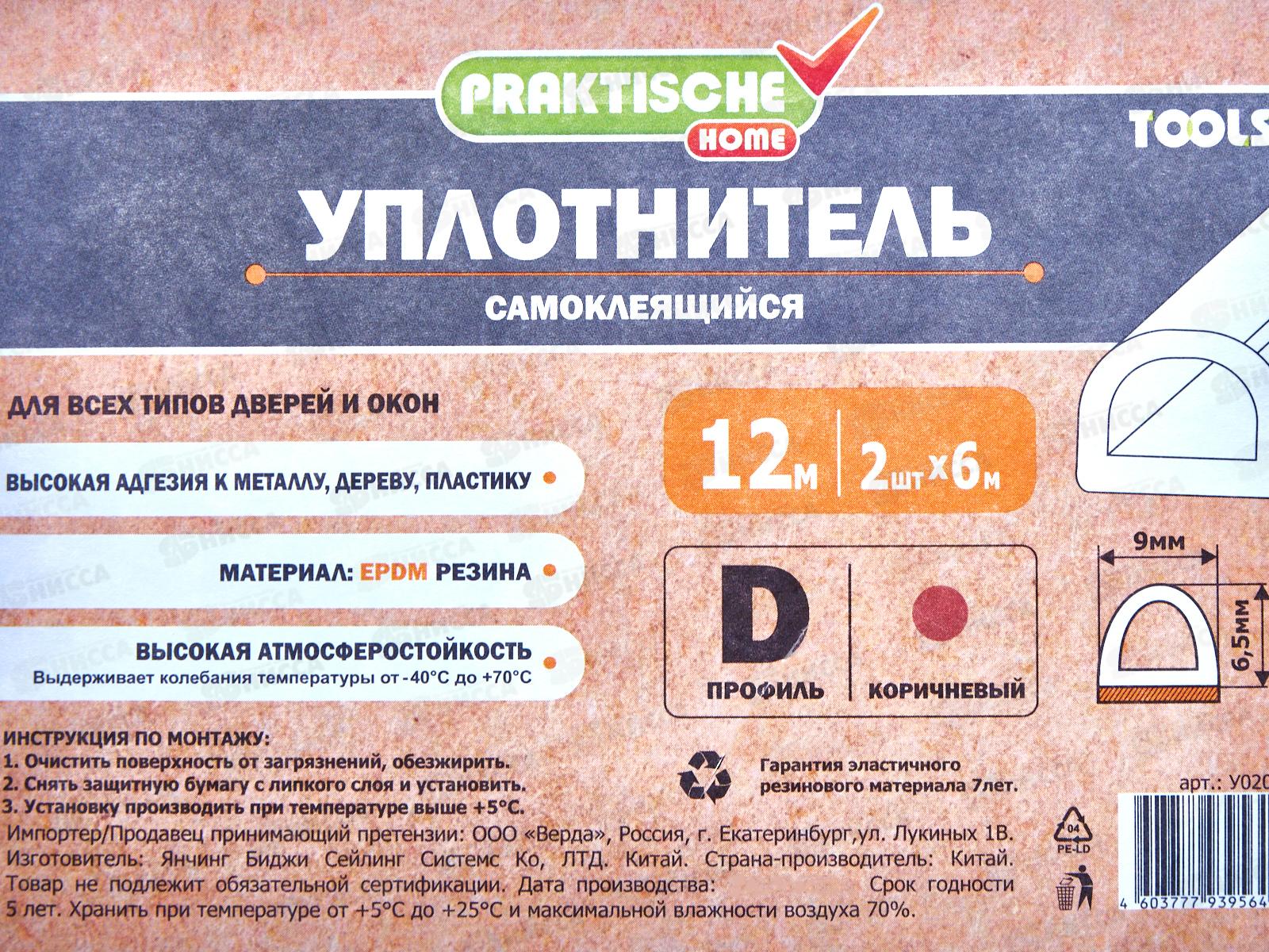 Уплотнитель самоклеящийся PRAKTISCHE 9х6,5мм D-12м (кор) У0207