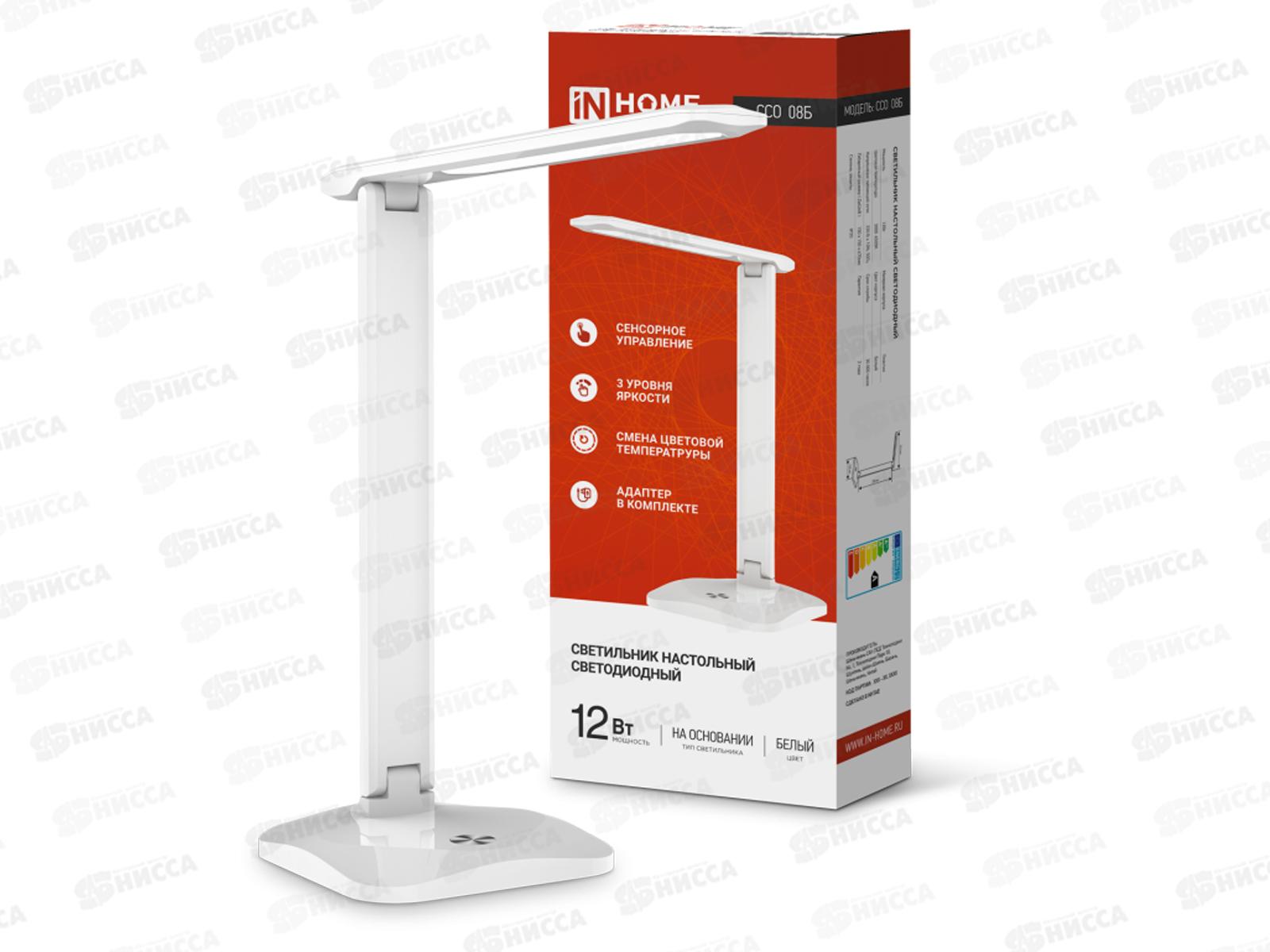 Лампа настольная светодиодная IN HOME ССО-08Б 12Вт 600Лм, сенсор, белая
