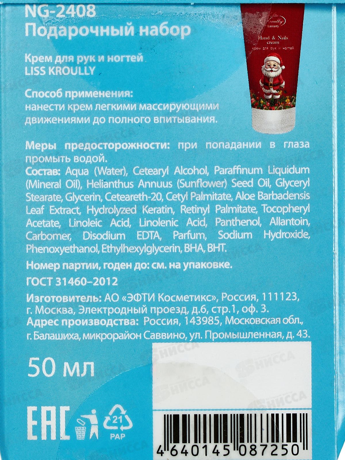 LISS KROULLY Подарочный Набор NG-2408 крем для рук и ногтей 50мл *12