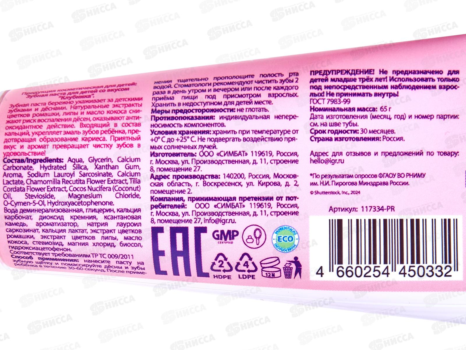 УМКА MASTER DENT зубная паста детская Милая принцесса Клубника 65г *24