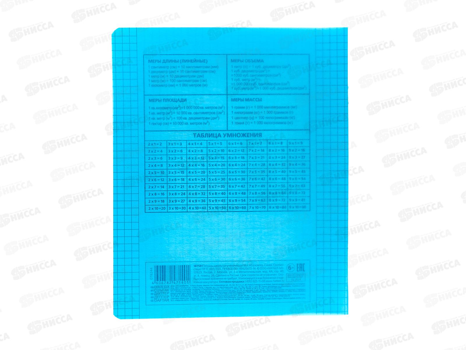 Тетрадь 18листов клетка Hatber пластиковая обложка скоба синяя, 078244 *10/120