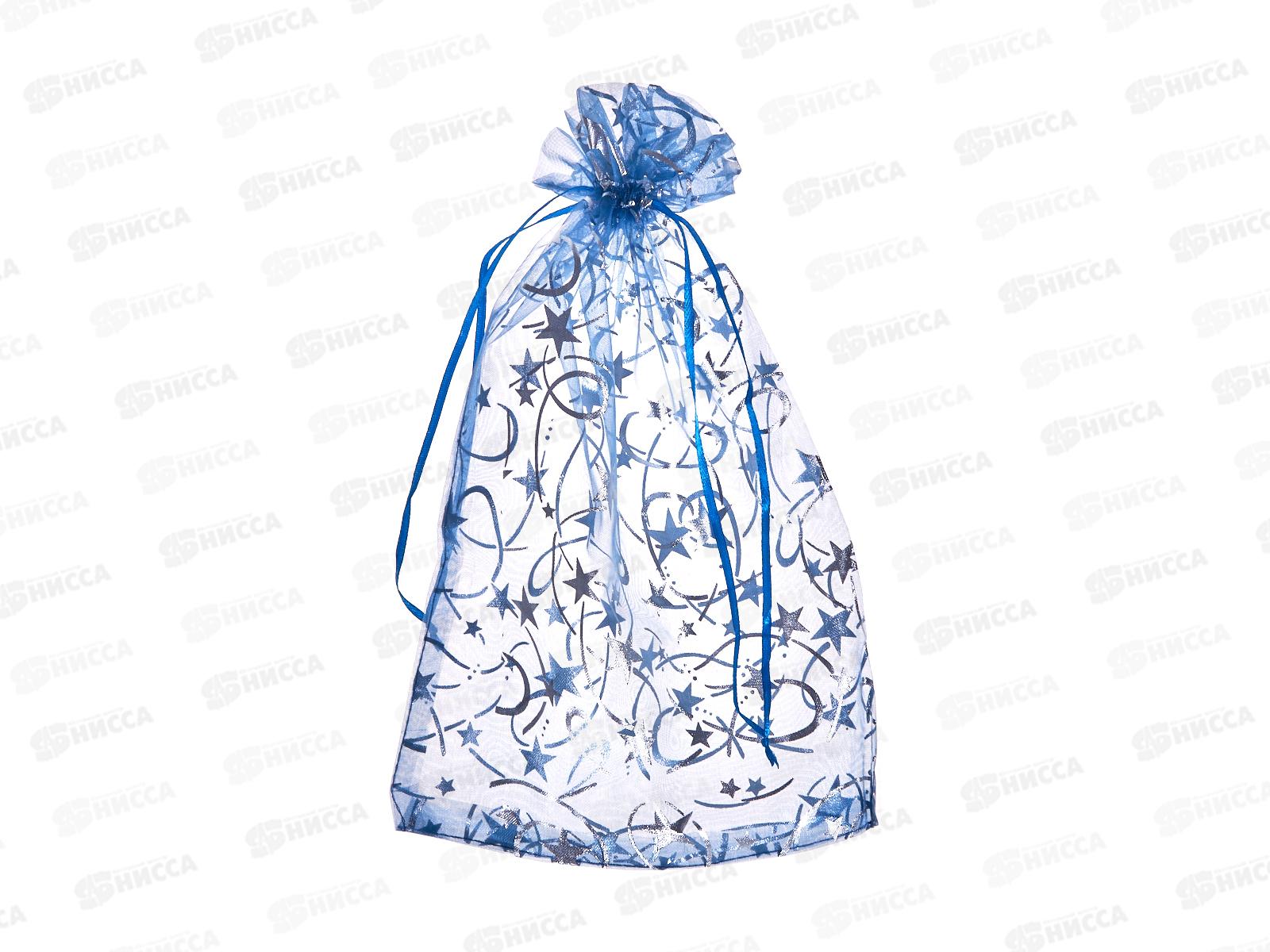 Мешочек из органзы 300*200мм Новый Год Синий микс 5 дизайнов *50/250