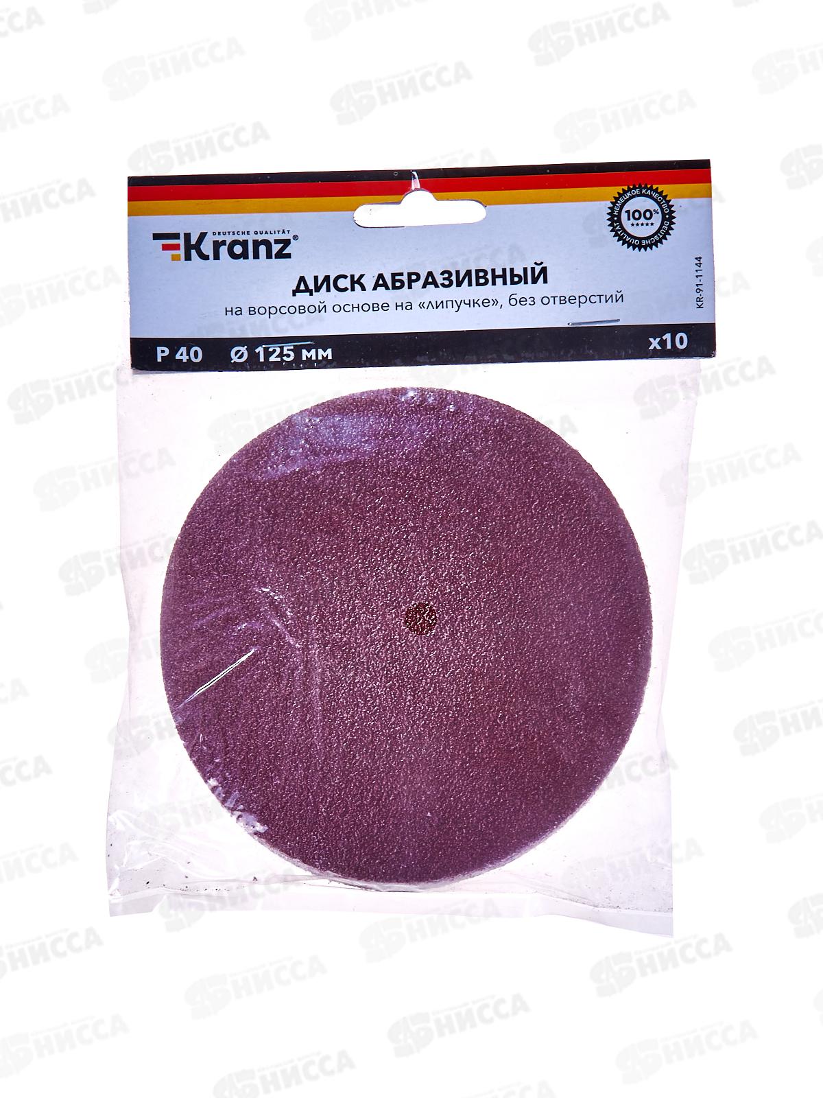 Диск абразивный на ворсовой основе, на липучке, без отверстий, P40, 125мм, 10 шт. KRANZ, KR-91-1144