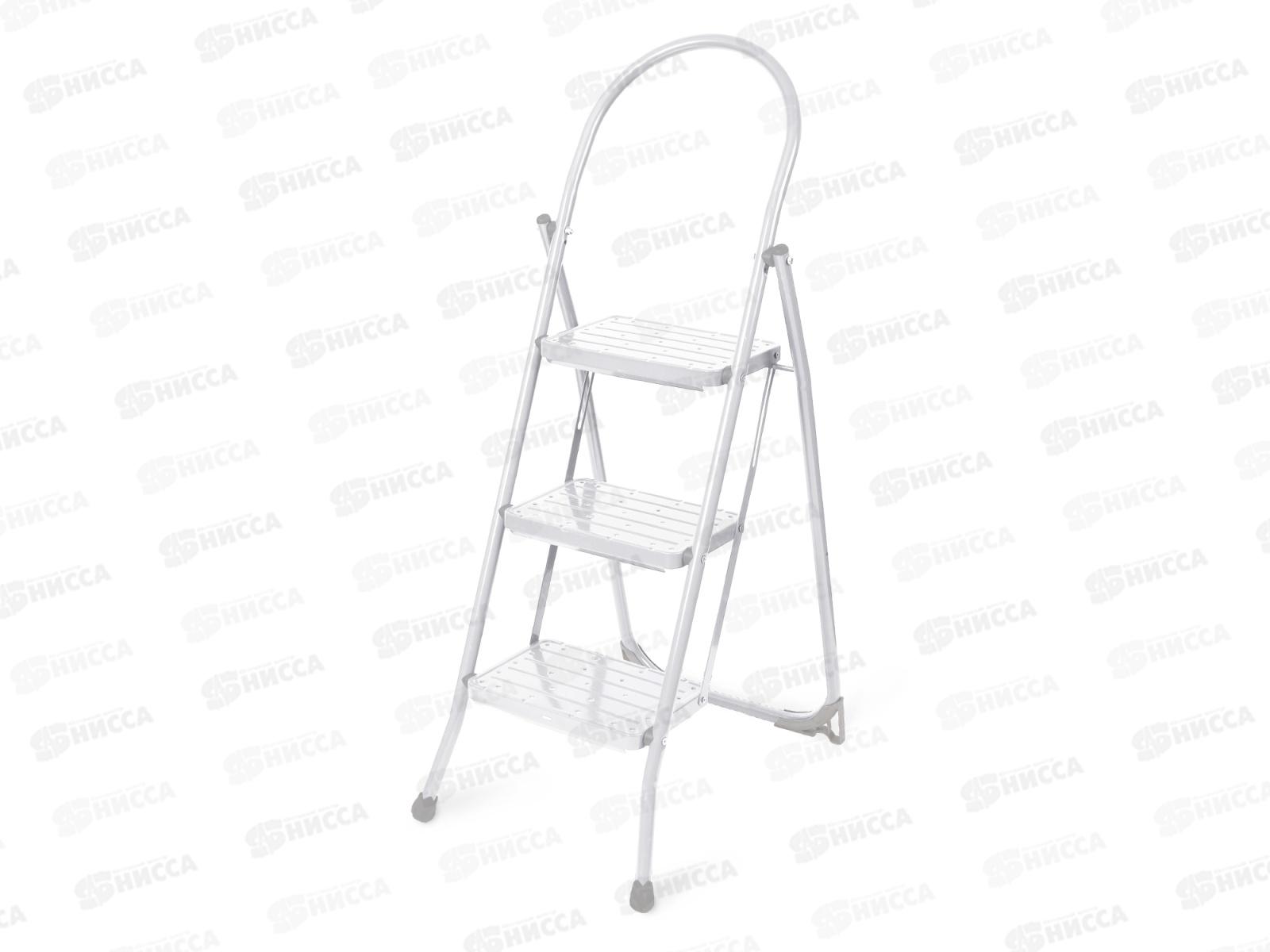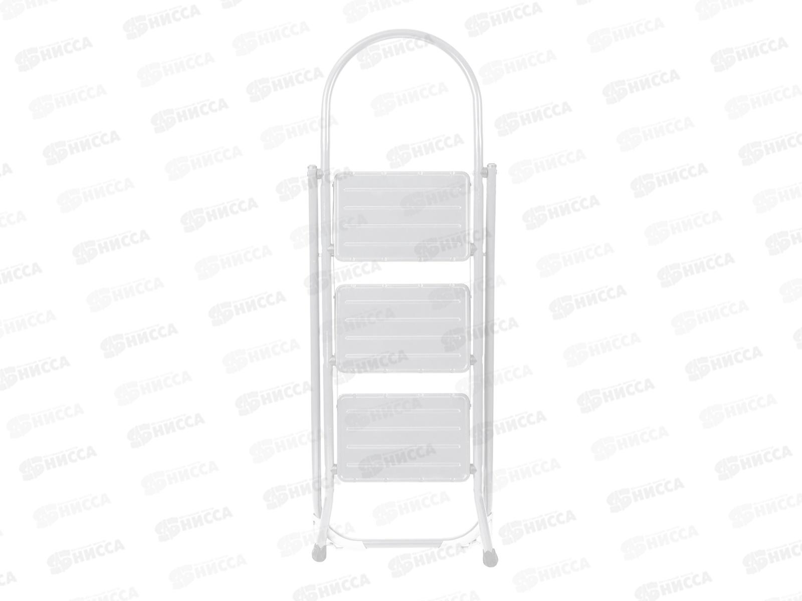 Стремянка с широкими ступенями для хозяйственно-бытовых работ. Стальной каркас. Рифленая поверхность рабочей площадки. Антикоррозийное покрытие. Пластиковые колпачки на опорах для устойчивости и защиты напольного покрытия. Компактное хранение в сложенном виде.