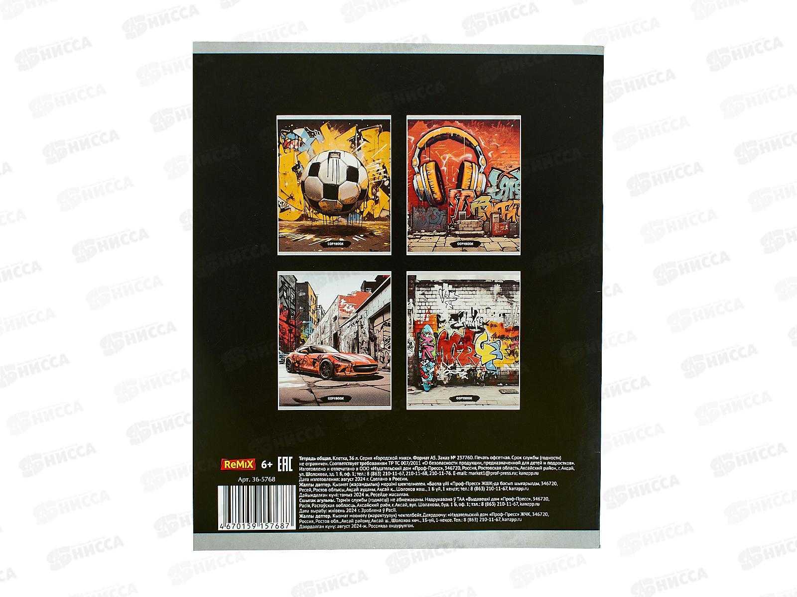 Тетрадь 36л клетка Remix Городской микс, второй блок, 36-5768 *120