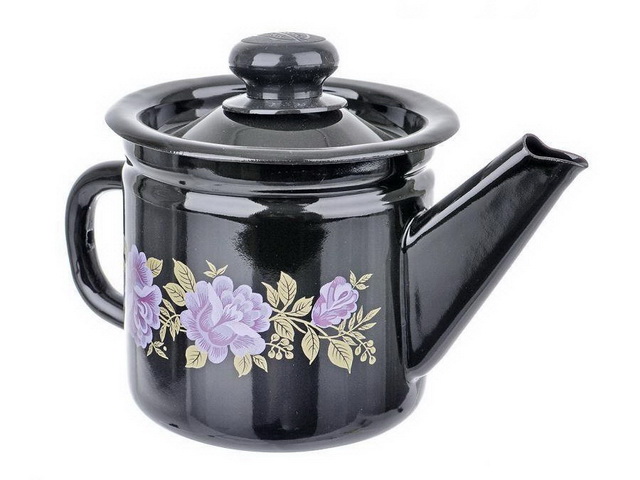 Чайник заварочный 1л декорированный черный с пластмассовой кнопкой С2707.36 *8