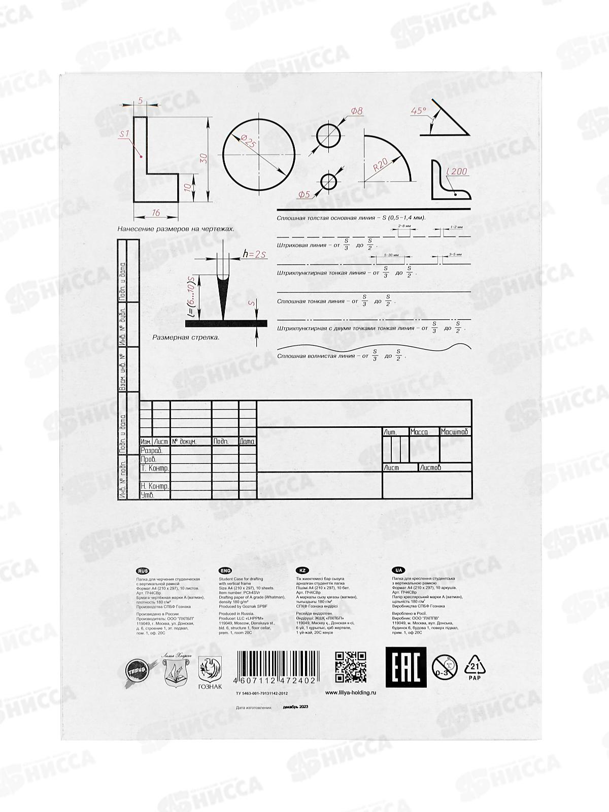 Папка д/черч. А4 10л ЛХ (ПЧ4 СВр) студенческая с вертикальной рамкой *30