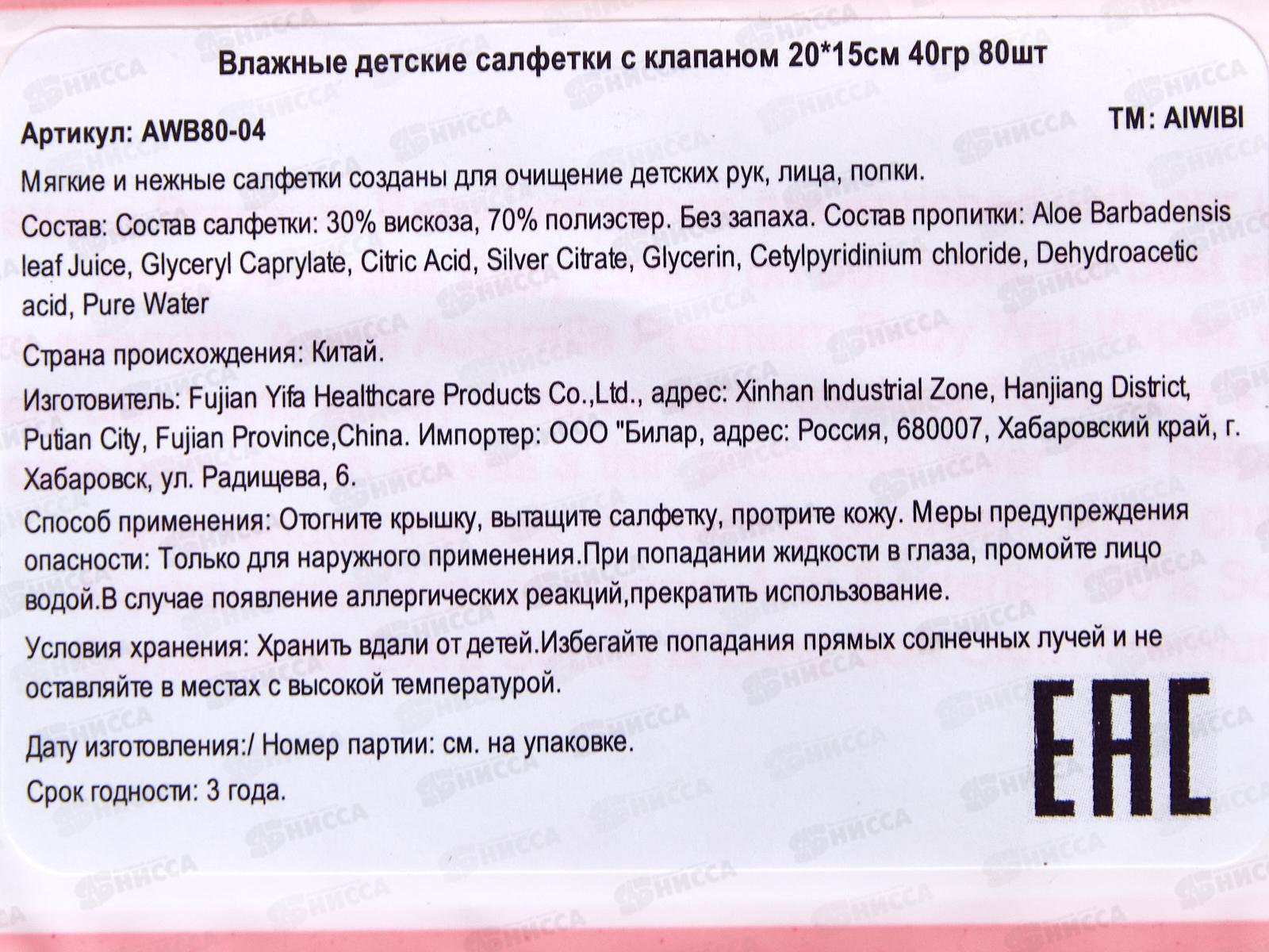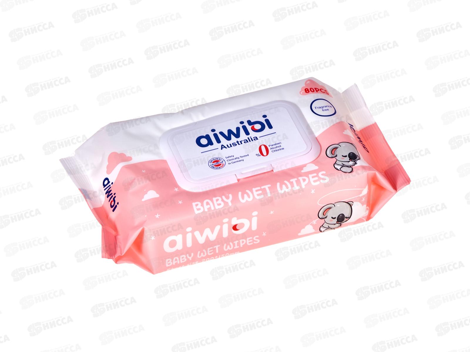 Aiwibi влажные салфетки детские Очищающие для чувствительной кожи 0+ 80шт клапан *24