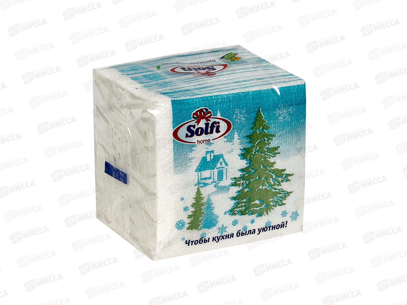 Салфетки СОЛФИ 100л с новогодним рисунком Домик в зимнем лесу *48