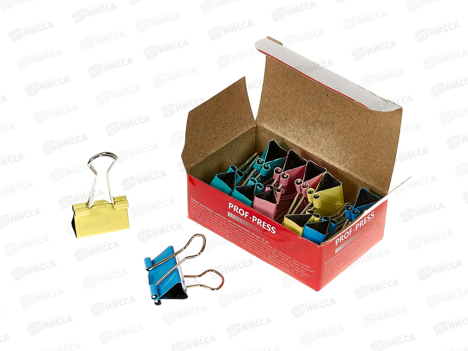 Зажим для бумаг 19мм 12шт ПП Цветной ЗК-4172