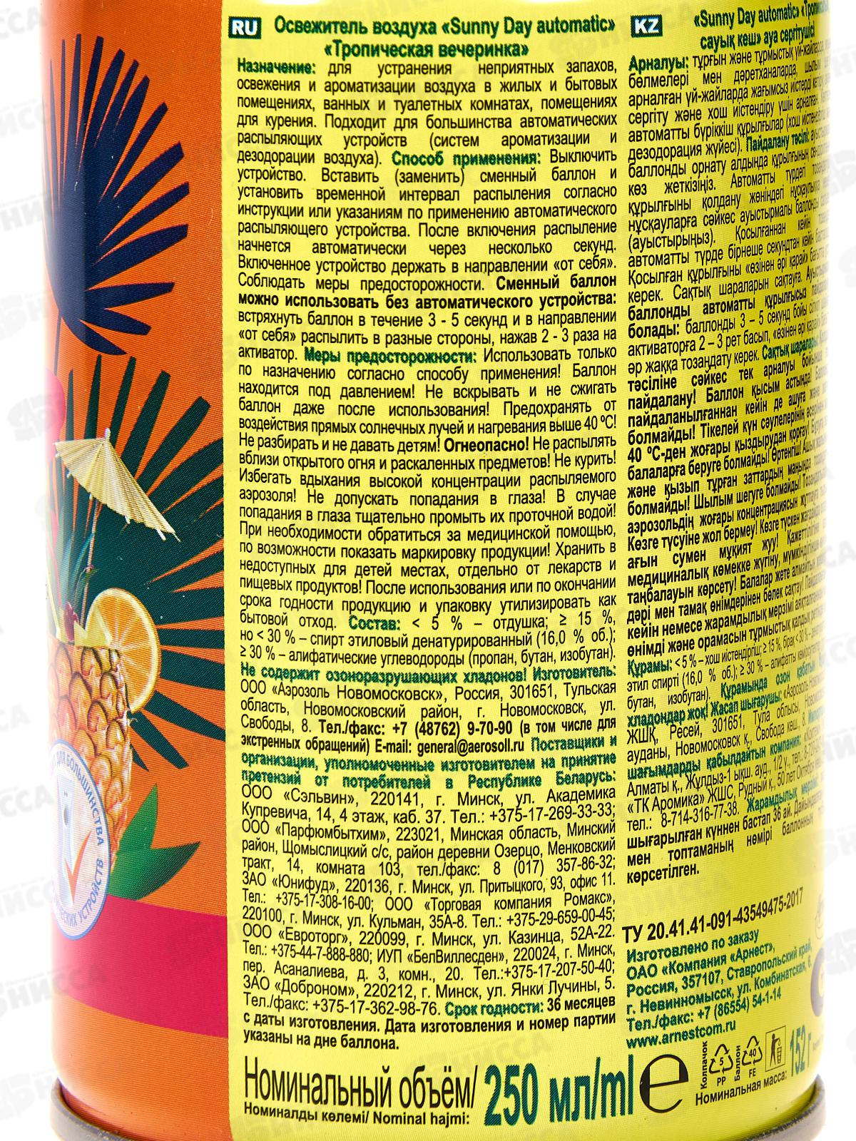 Sunny Day Автомат освежитель воздуха Тропическая вечеринка 250см3 с/б