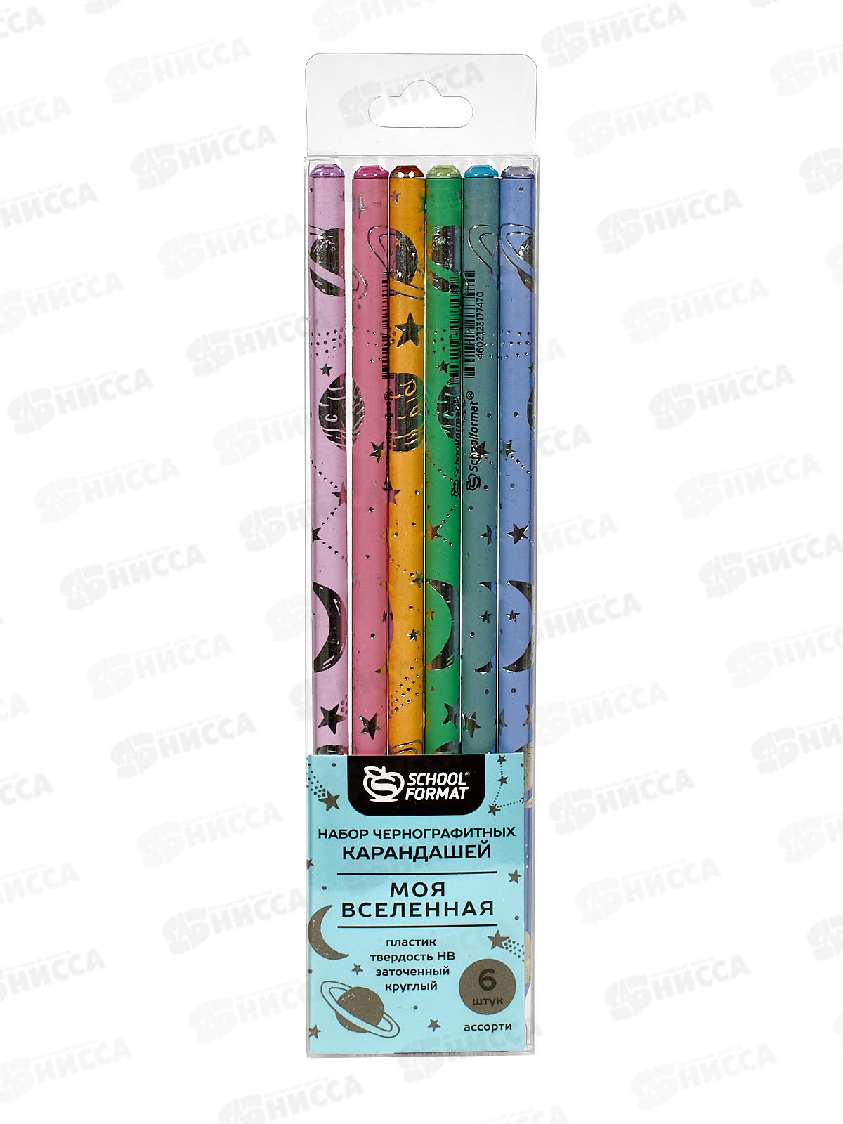 Карандаш чернографитный schoolФОРМАТ Моя вселенная HB 6шт.пластиковый КЧ-МВ-НВМ *24