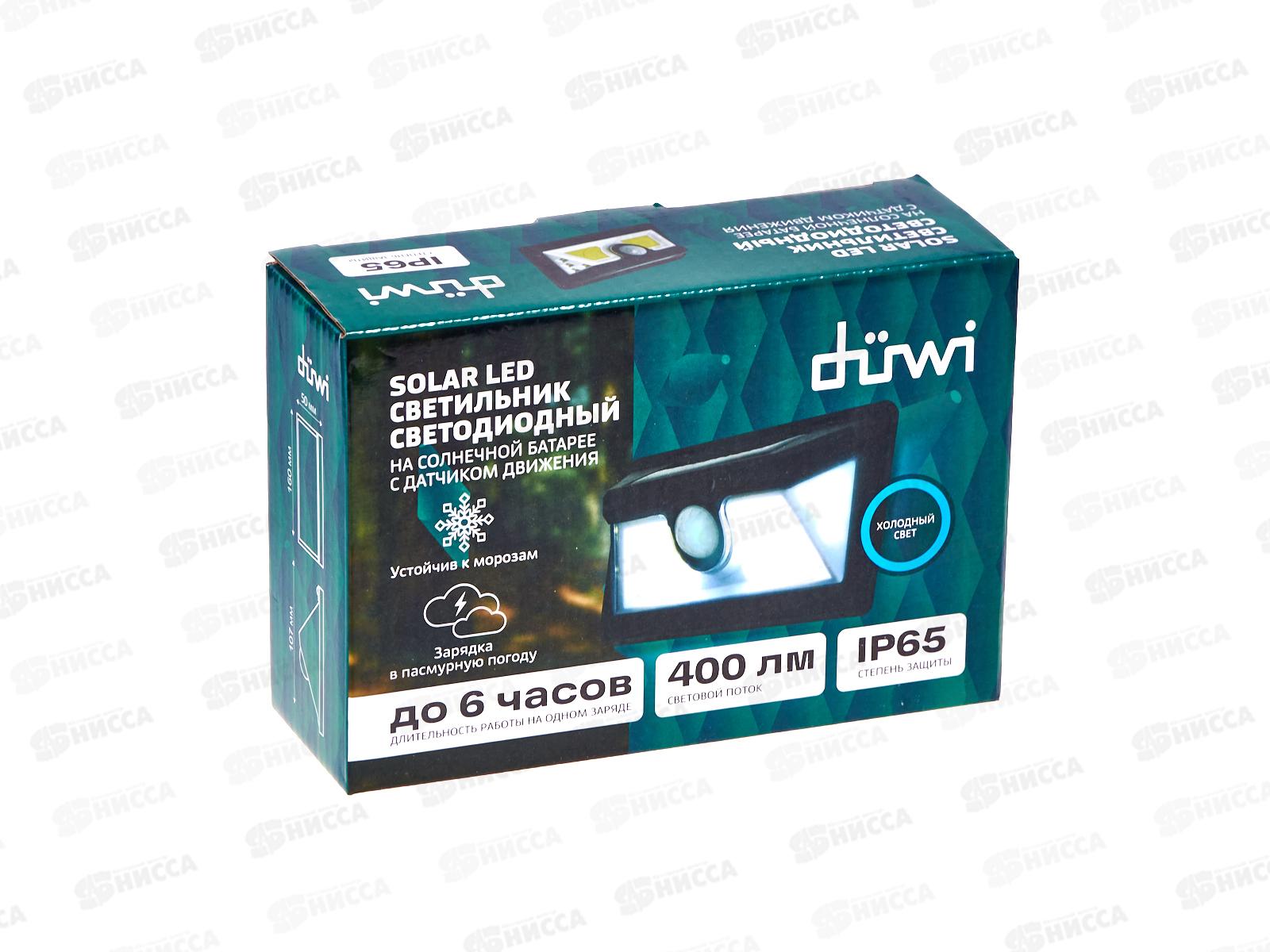 Светильник светодиодный на солнечных батареях 11Вт 6500К 400Лм IP65 с датчиком движения черный, 25016 duw