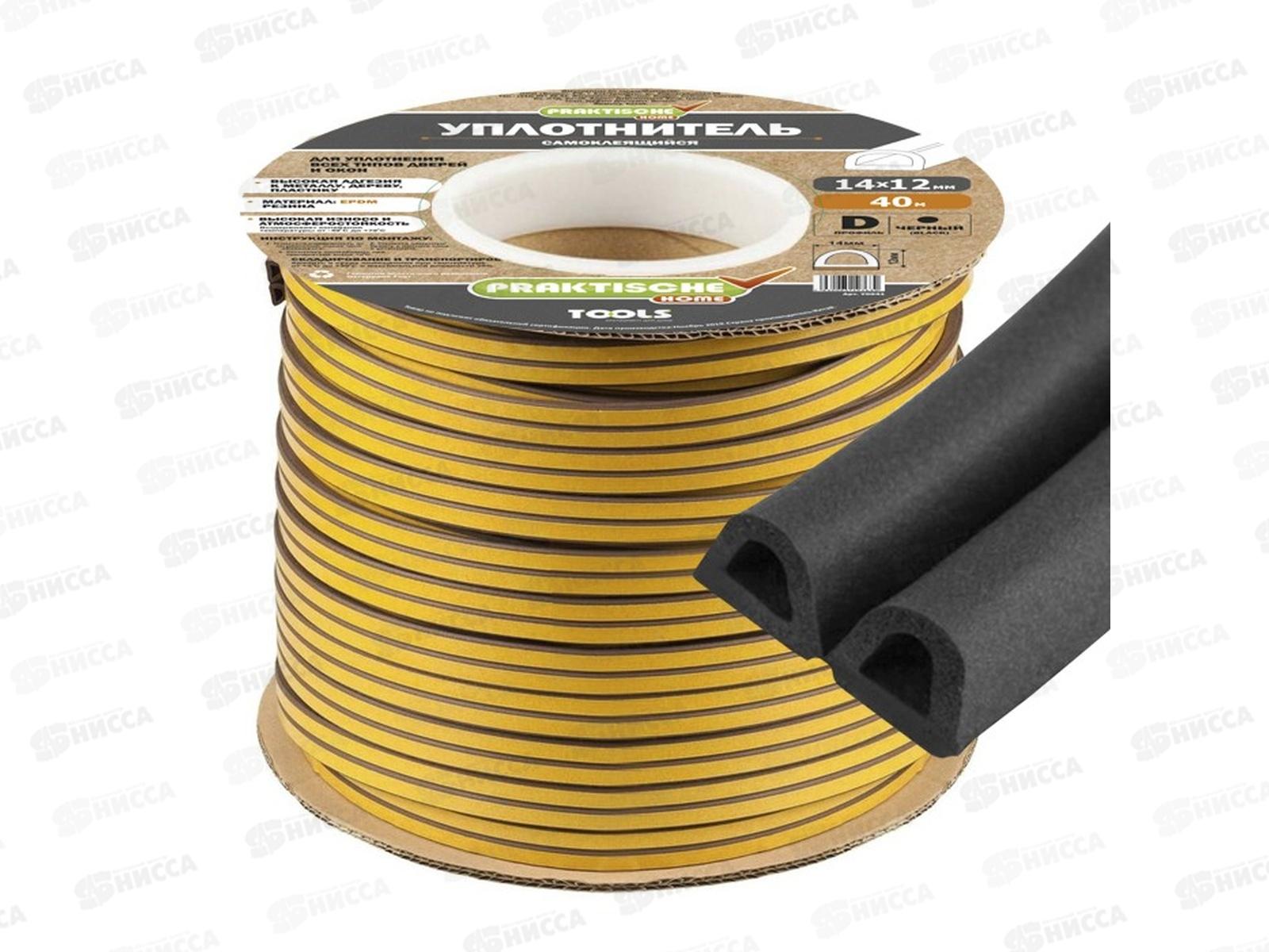 Уплотнитель самоклеящийся промышленный PRAKTISCHE 14х12мм D40м (черный), У0041