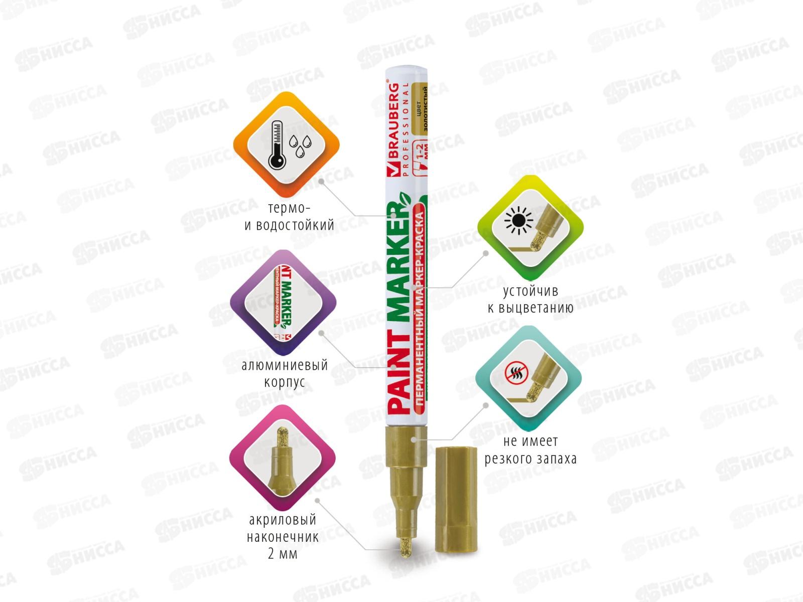 Маркер-краска BRAU лаковый золотой,2мм б/запаха алюм.корпус 150867 *12