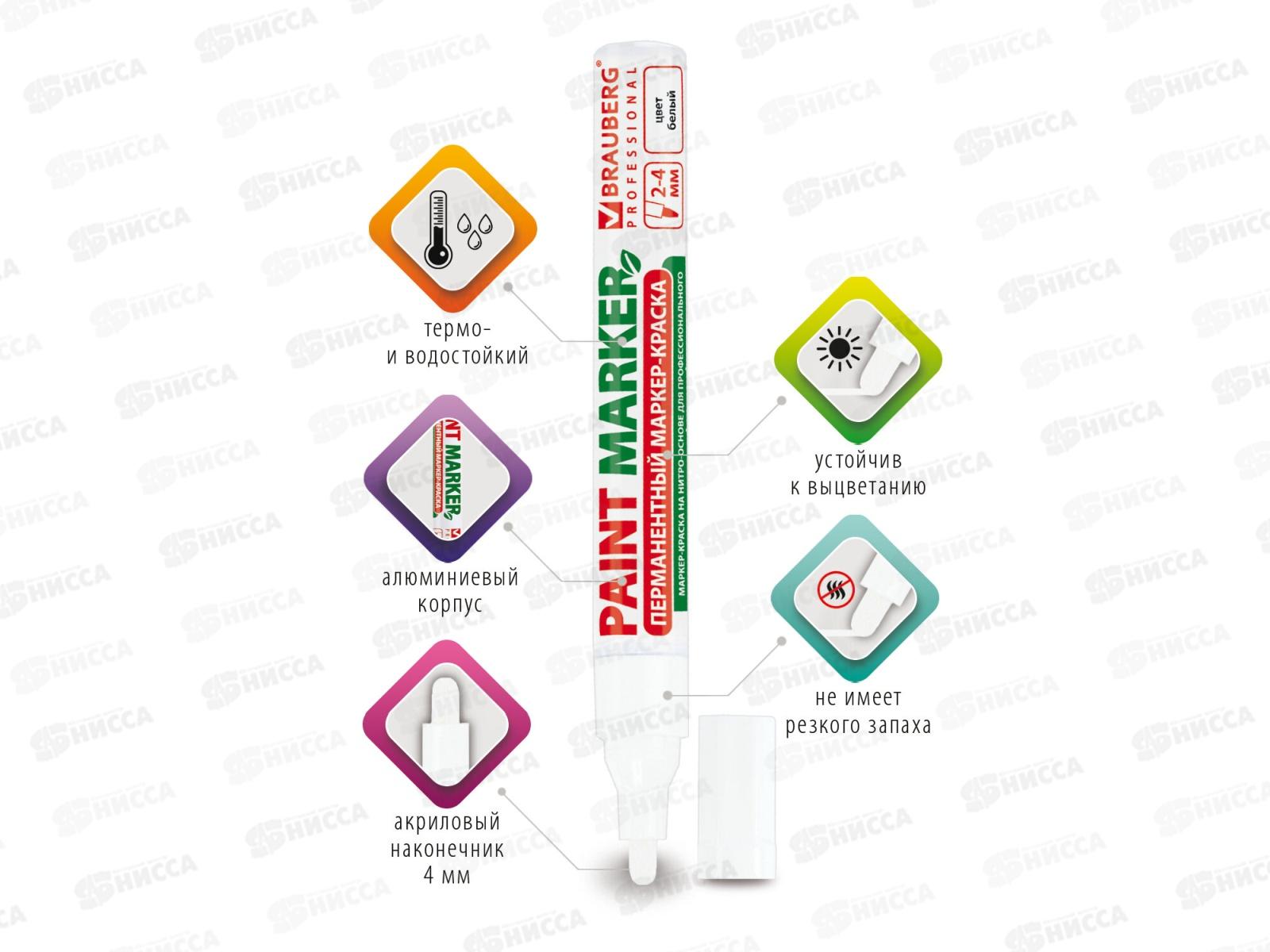 Маркер-краска BRAU лаковый белый, 4мм б/запаха алюм.корпус 150878 *12