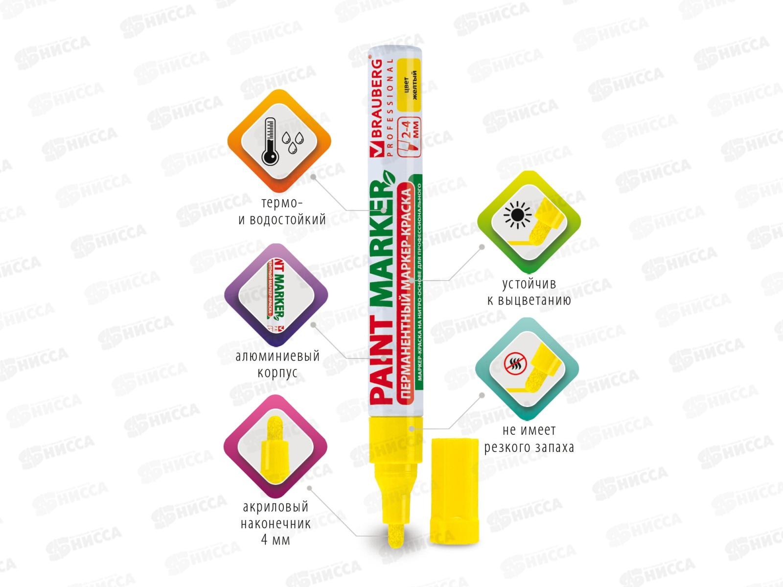 Маркер-краска BRAU лаковый желтый, 4мм б/запаха алюм.корпус 150872 *12