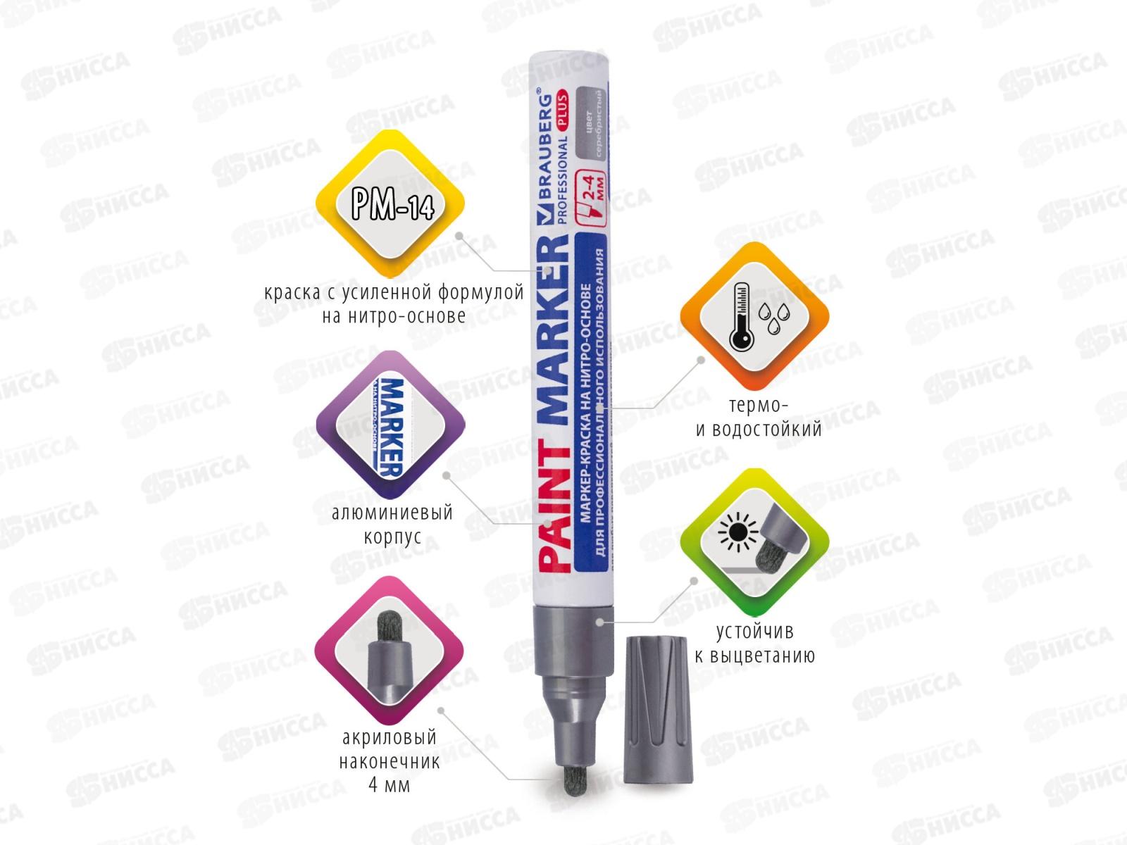 Маркер-краска лаковый BRAUBERG предназначен для маркировки различных материалов в промышленных условиях: бетона, дерева, стекла, металла, резины, пластика. Заправлен краской с усиленной формулой на нитро-основе РМ-14. Чернила с лаковым эффектом производства компании MULTICHEM являются экологичными и безопасными для окружающей среды. Благодаря усиленной формуле идеально подходят для нанесения долговечной маркировки на любых поверхностях, включая влажные.