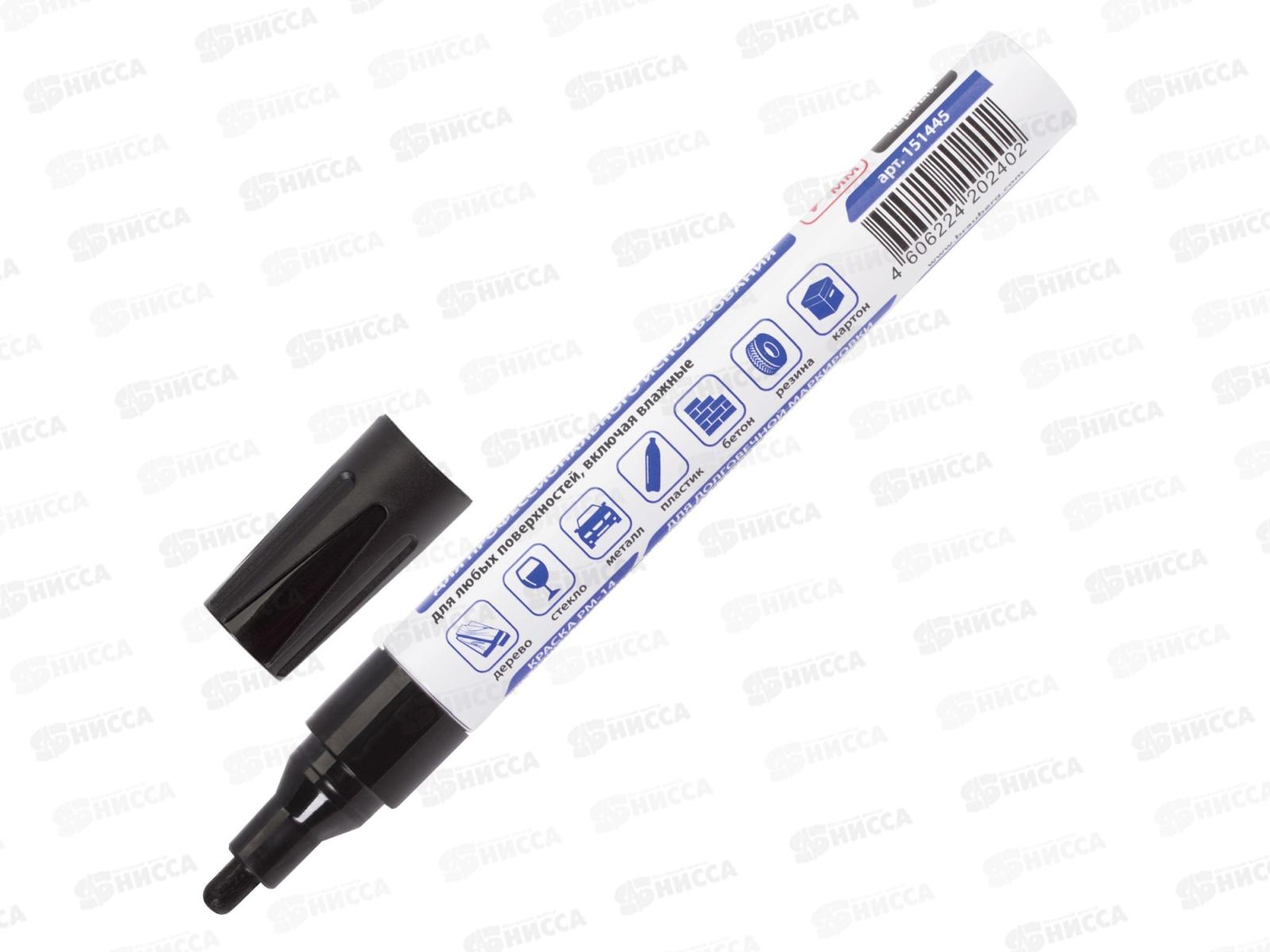 Маркер-краска BRAU лаковый черный, 4мм нитро- алюм.корпус 151445 *12/144