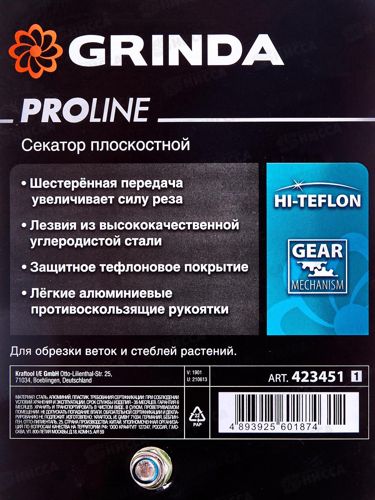 Секатор плоскостной, 200мм, GRINDA P-51, закаленная сталь, шестерённая передача, двухкомпонентные рукоятки, покрытие ПВХ, плоскостной секатор, PROLine, 423451