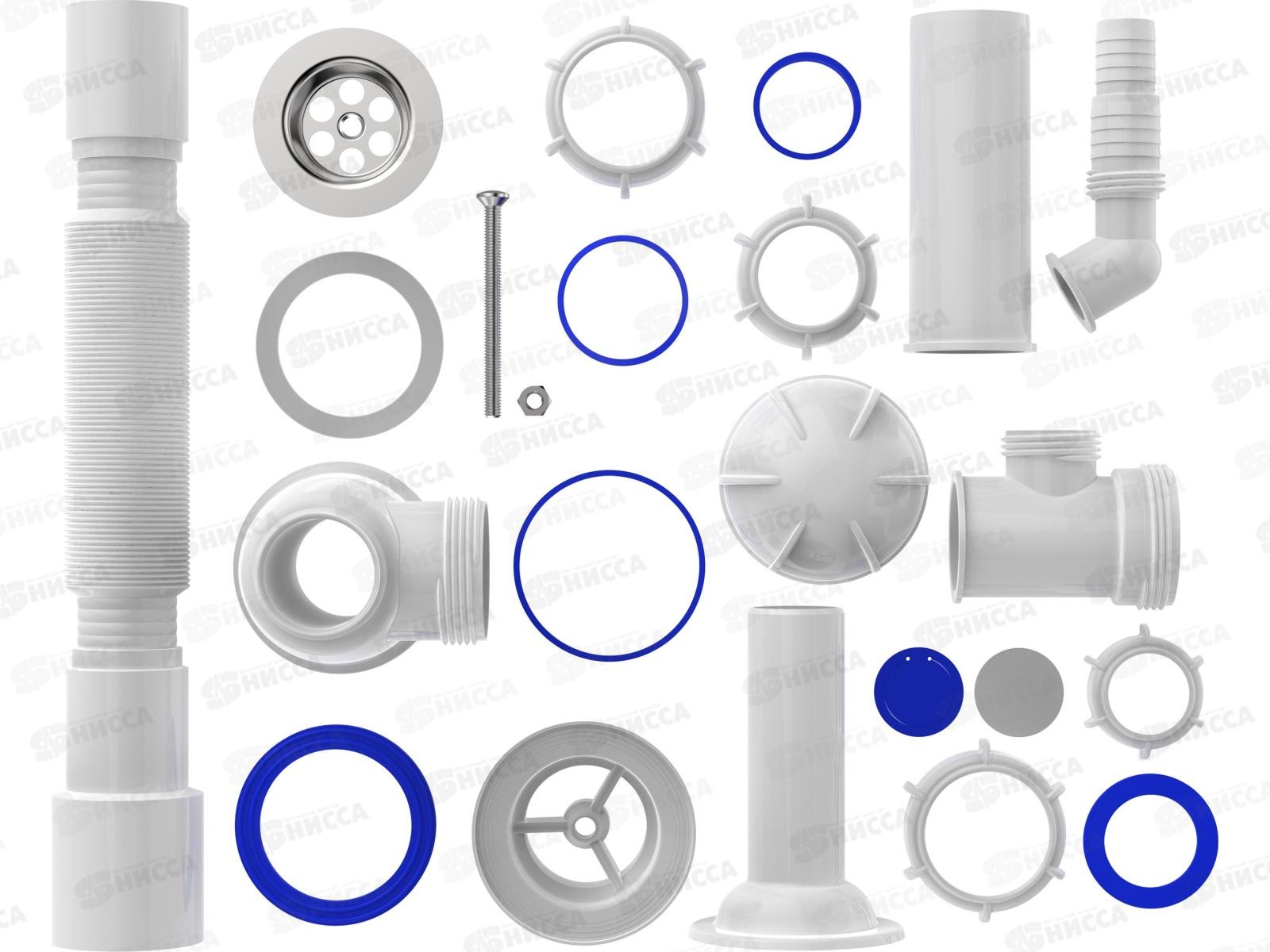 Малый сифон бутылочного типа от бренда Aquant для раковин и умывальников с диаметром сливного отверстия 42-48 мм, с удлиненной горловиной с литым выпуском (тюльпан) с решеткой из нержавеющей стали O63 мм. Корпус сифона небольшой по габаритам, с диаметром всего 70мм. Решетка крепится к выпуску на винт 80 мм и гайку шестигранную М6. Патрубок отвода под гайку 1 1/4" (внутренний диаметр 32мм). Высота установки сифона регулируется. Идет в комплекте с специальным патрубком с отводом для подключения стиральной машины и гофротрубой с универсальным выходом под два диаметра 40/50мм для подключения к канализации. Сифон прост в установке, позволяет прочистить его в случае засорения без демонтажа и способен улавливать мелкие предметы, например, кольца или серьги. Конструкция корпуса сифона Аквант имеет эксклюзивный дизайн и запатентована патентом на промышленный образец. Внутренняя поверхность стакана сифона с зеркальной полировкой обеспечивает улучшенную проточность. Скорость слива: 25 л/мин. Все пластиковые детали сифона производятся из первичного полипропилена с добавлением снежно-белого красителя. Прокладки изготовлены из высококачественных пластикатов (TPE, PVC, LDPE) и обеспечивают длительный срок службы и высокую ремонтопригодность. Сифон выдерживает перепад температур от +5 до +80 градусов. Все необходимые прокладки, гайки и винты в комплекте.