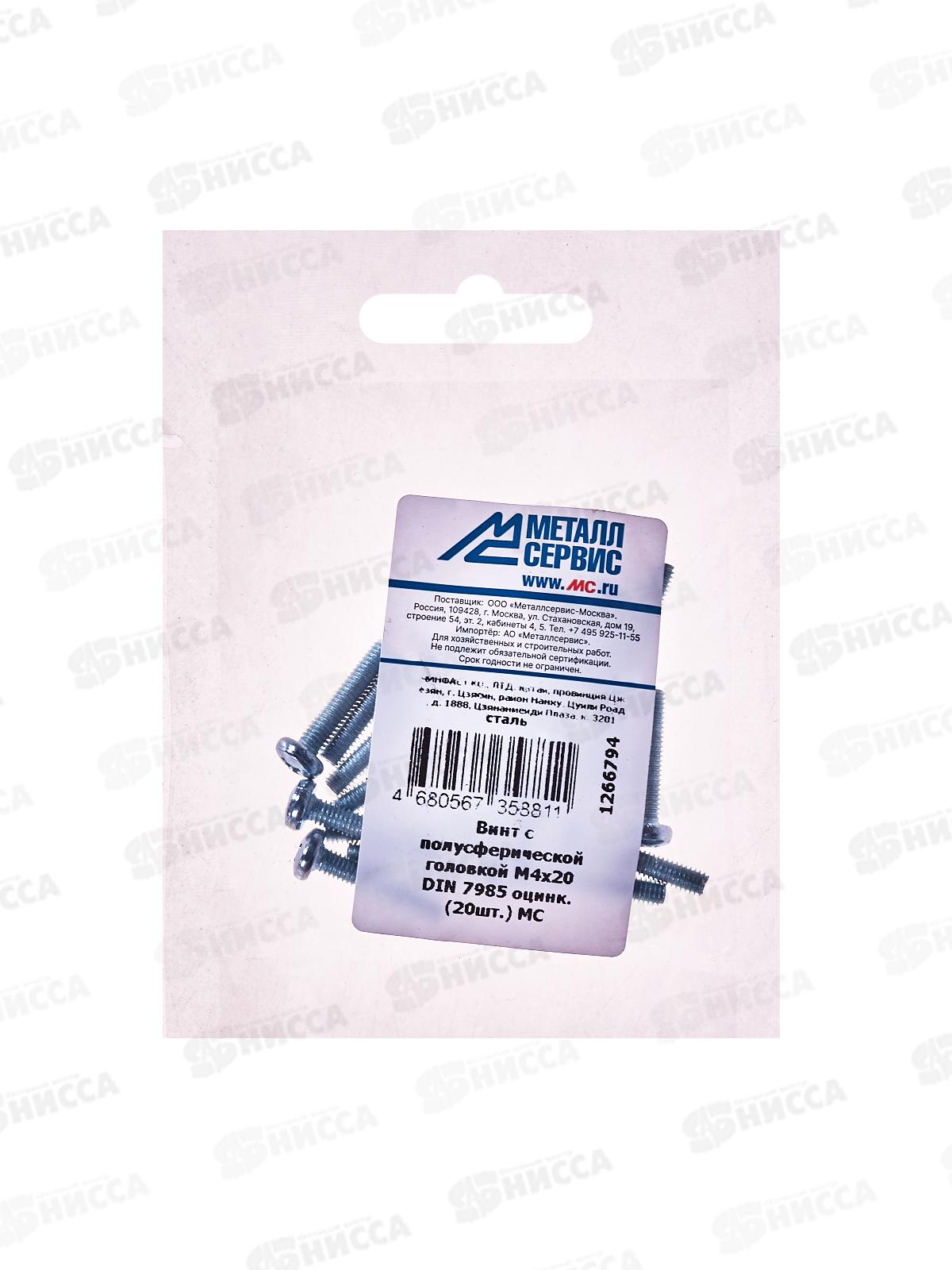 Винт с полусферической головкой M4x20 DIN7985 оцинк. (20шт) *10