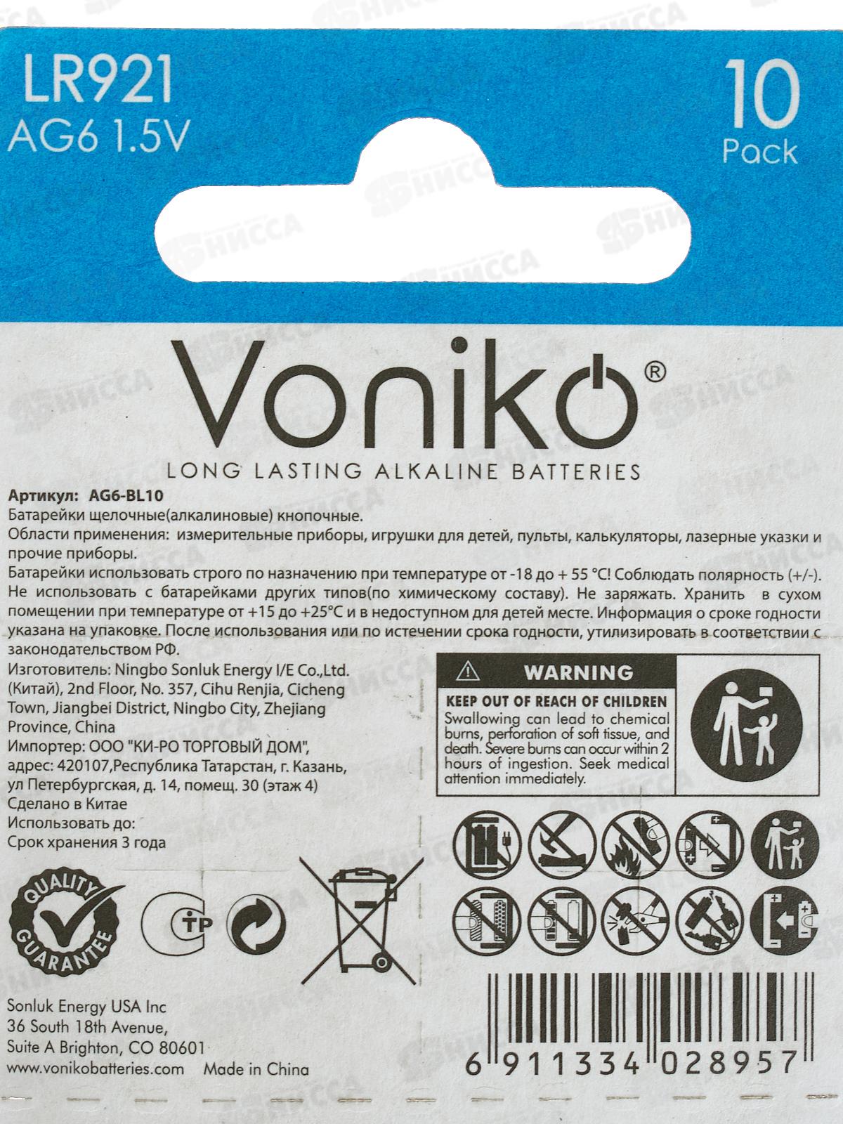 Батарейка VONIKO AG6, 1.5В *10/200/3200