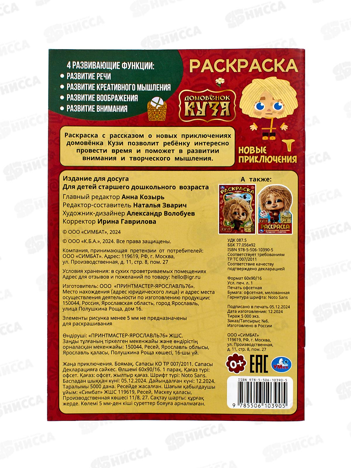 Раскраска "УМКА" 10390-5, Новые приключения. Домовенок Кузя. 145х210мм 16стр. *50