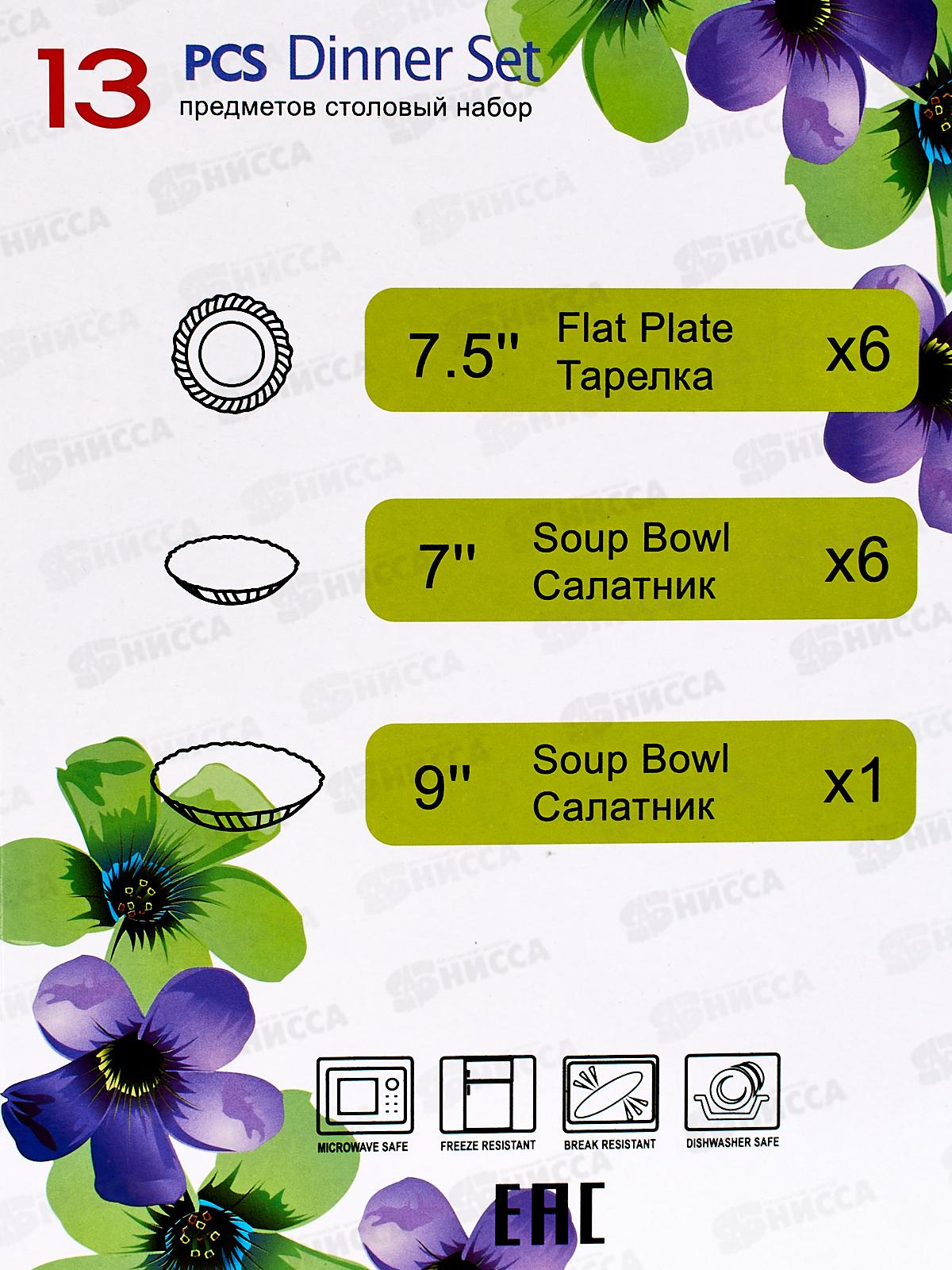 Набор столовый 13пр т19см 6шт с17,5см 6шт сал22,5см Черный 100ч-13т