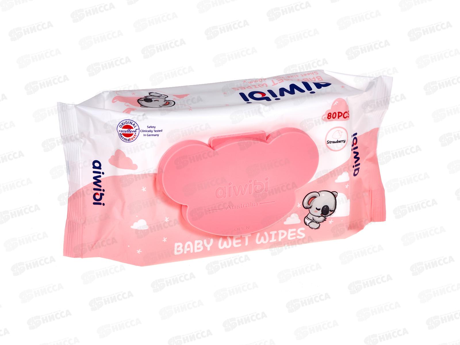 Aiwibi влажные салфетки Очищающие для чувствительной кожи Клубника Коала 80шт клап *24