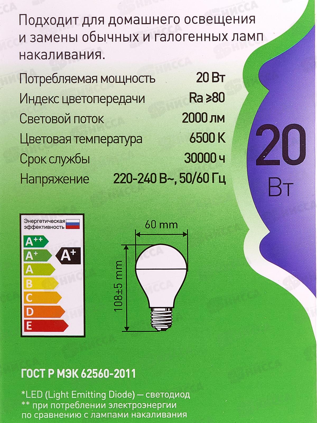 Лампа светодиодная ЭРА GREEN LINE LED 20Вт 6500К, A60-20W-865-E27 *10/100
